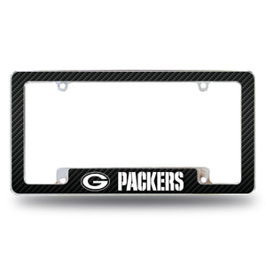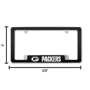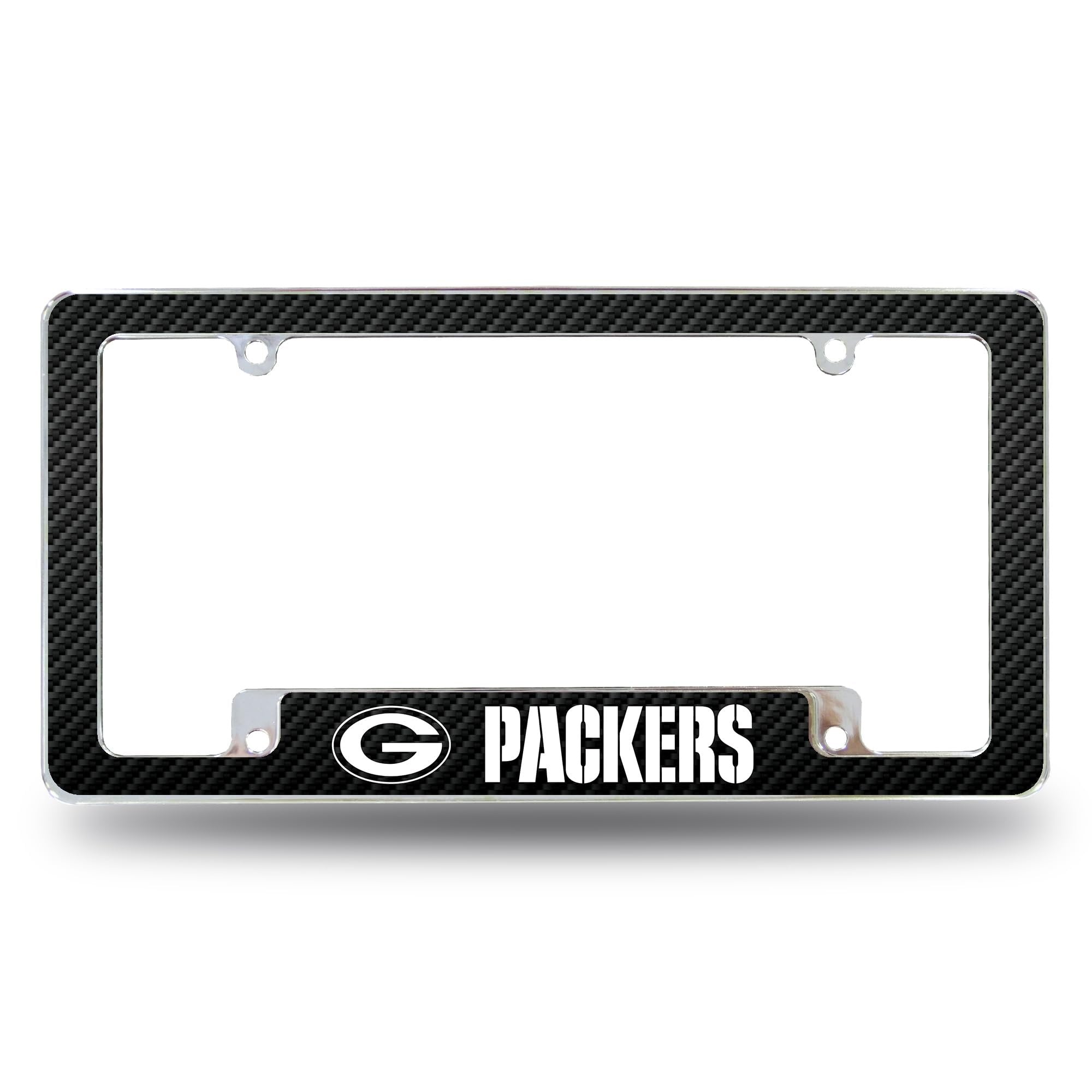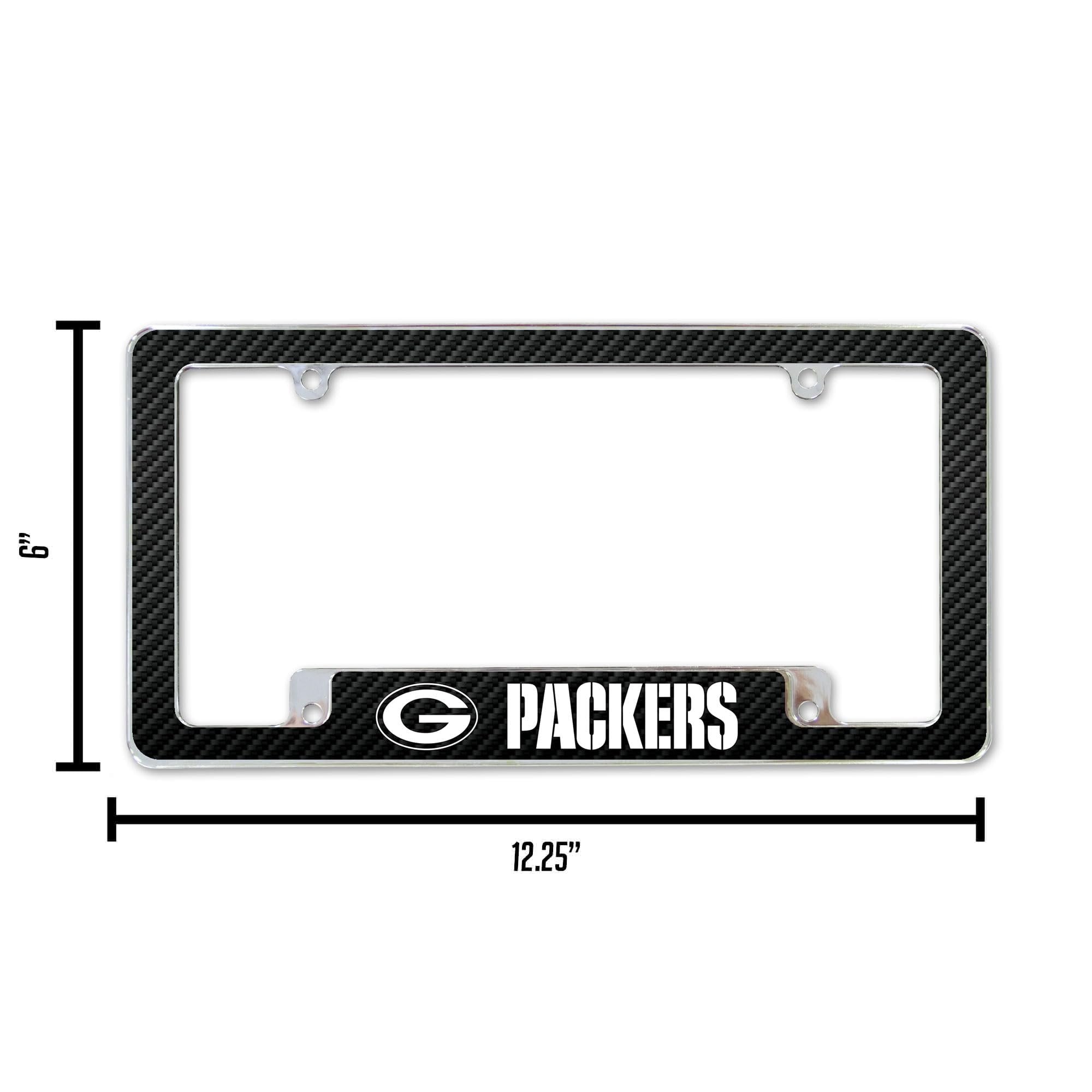 Green Bay Packers Chrome Metal License Plate Frame Tag Cover, Carbon Fiber Design, 12x6 Inch