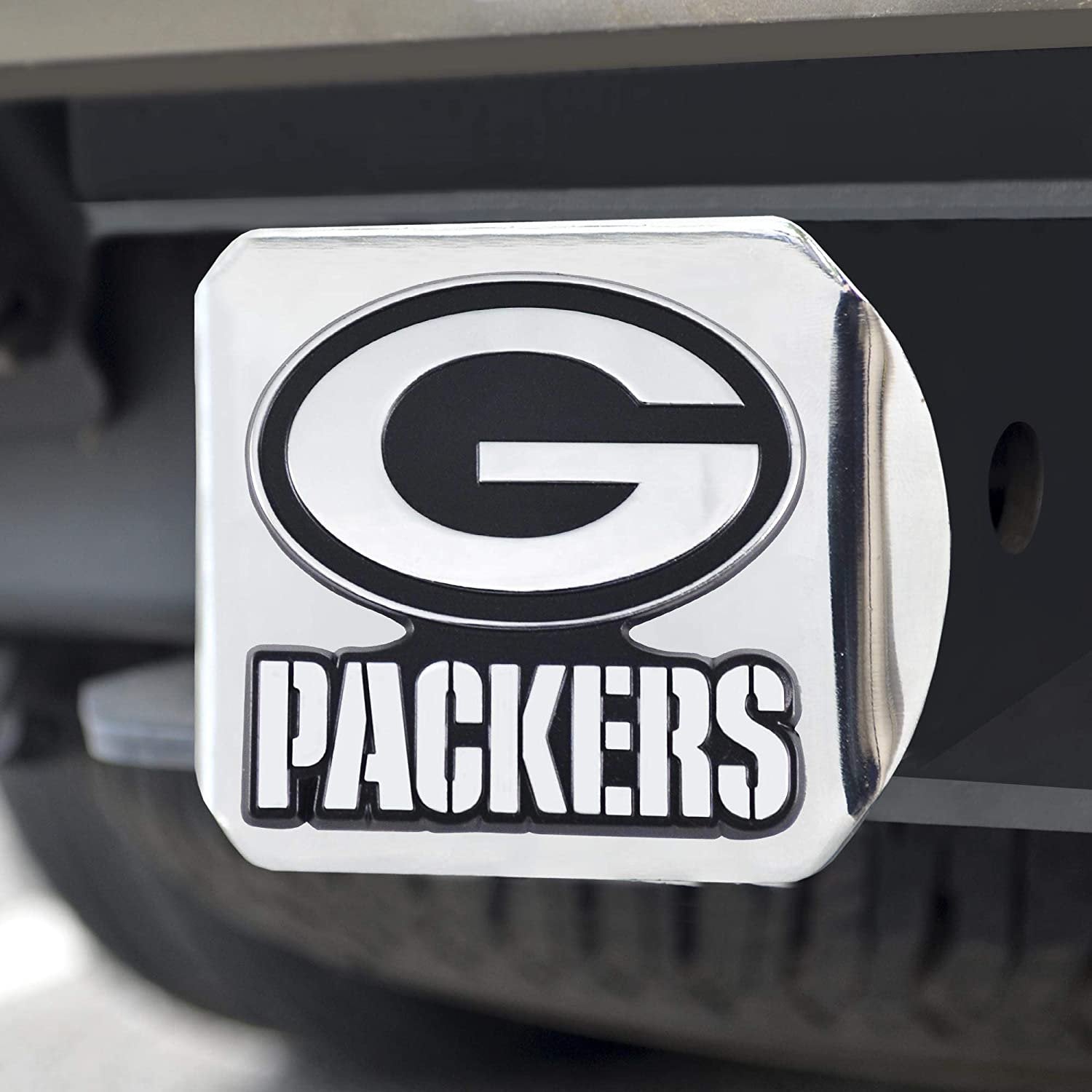 Green Bay Packers Hitch Cover Solid Metal with Raised Chrome Metal Emblem 2" Square Type III