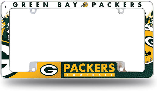 Green Bay Packers Metal License Plate Frame Chrome Tag Cover All Over Design 6x12 Inch