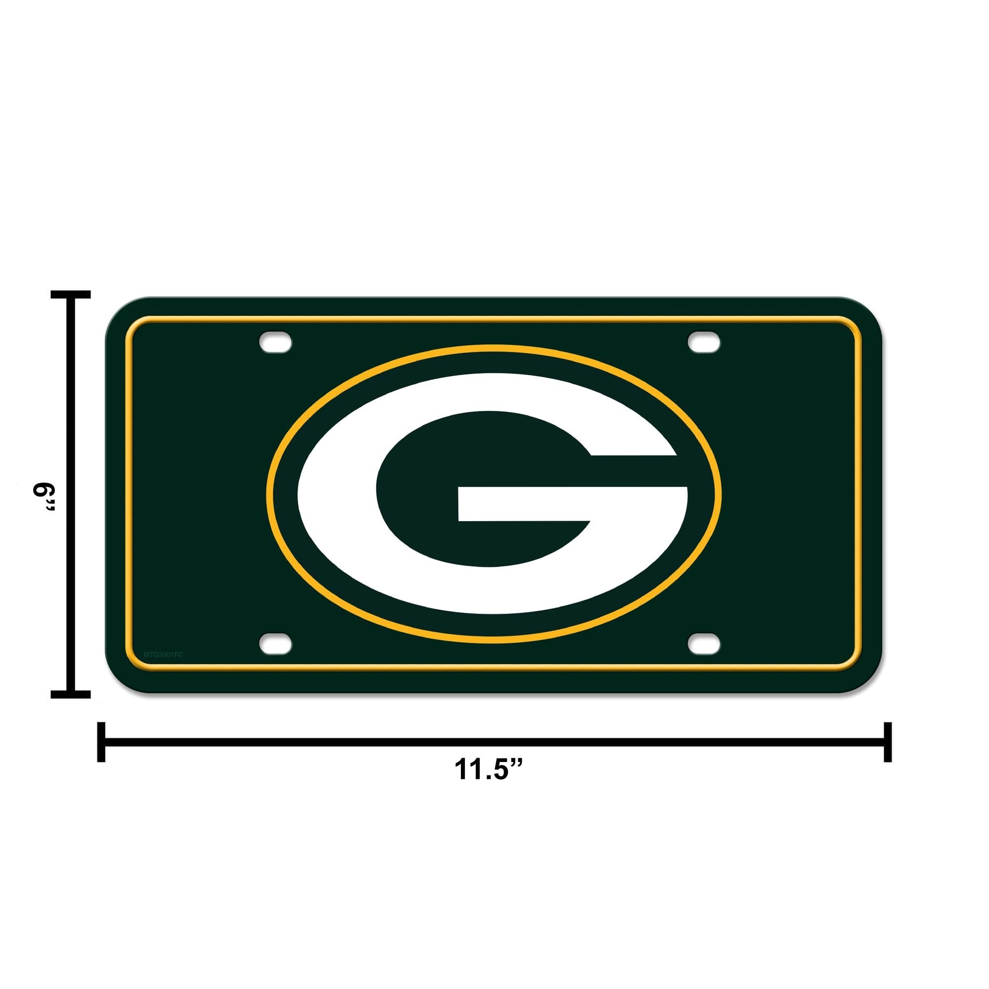 Green Bay Packers Team Logo Metal Auto Tag 6" x 12" A great gift idea for Packers football fans that is guaranteed to be a beloved possession with eye catching graphics. Durable and fade resistant, the 12" x 6" automobile tag is expertly made, using quality aluminum which ensures it can survive the different season and extreme weather. This auto accessory is perfect for the casual and everyday fan. Whether it is game day at the stadium or a home game with friends this auto tag will be the highlight of the drive. This tag can be used on the front or back or your car, truck, or RV. It can also be used on your trailer. Has predrilled screw holes to easily attach onto your automobile. Hassle free!Great Gift Item for NFL Football Fans: Guaranteed to be your most beloved possession as it boasts eye catching graphics and is inscribed with your favorite squad’s name and colors. Proudly display your favorite teams name and colorA One-Of-A-Kind Tag – Be the first to own an exceptionally durable, fade resistant 12" x 6" automobile tag. Expertly made, using quality aluminum which ensures your tag can survive the different season and extreme weather.A Fan Favorite 12" x 6" Car/Truck Tag - This auto accessory is perfect for the casual and everyday fan. Whether it is game day at the stadium or a home game with friends this auto tag will be the highlight of the drive.High Performance & Versatile: This brand-new accessory tag can be used on the front or back or your car, truck, or RV. It can also be used on your trailer. Has predrilled screw holes to easily attach onto your automobile. Hassle free!Bring Your Room Car To Life With This Officially Licensed Car/Truck Tag - A limited edition collectible that will be talked about forever whether you are a casual, social, or super fanatic fan. All your friends will be asking you where you got your auto Tag!