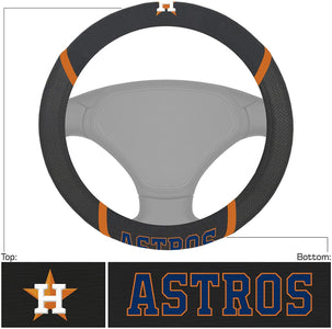 Houston Astros Steering Wheel Cover Premium Embroidered Black 15 Inch
