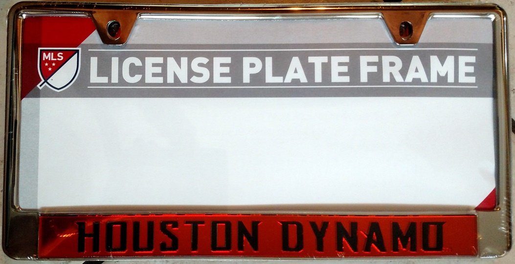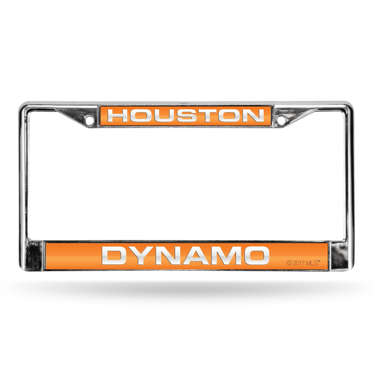 Houston Dynamo Metal License Plate Frame Chrome Tag Cover, Laser Cut Acrylic Inserts, 12x6 Inch, Pre-Drilled Holes, Officially Licensed