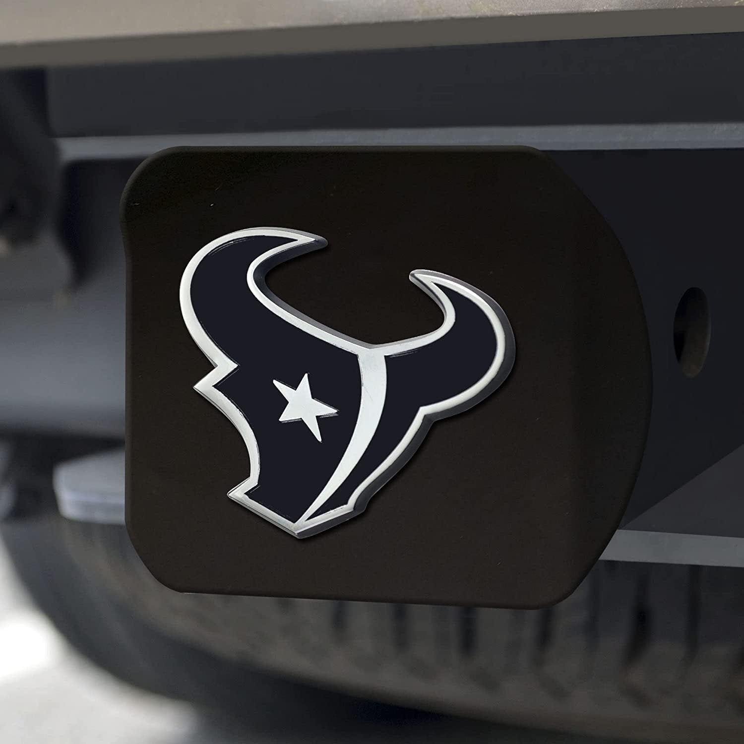 Houston Texans Solid Metal Black Hitch Cover with Chrome Metal Emblem 2 Inch Square Type III
