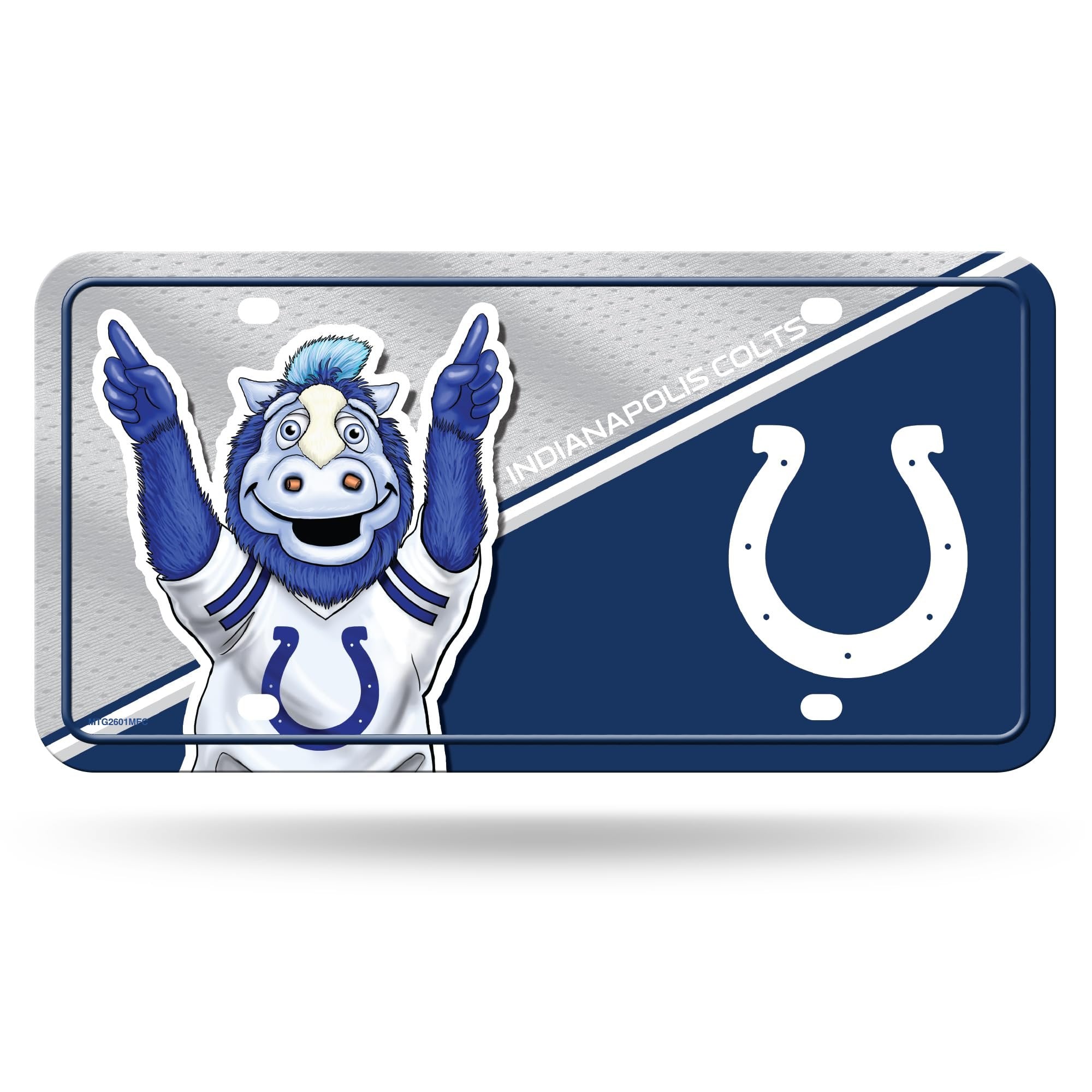 Indianapolis Colts Mascot Design Metal License Plate 6" x 12" A great gift idea for Indianapolis Colts football fans that is guaranteed to be a beloved possession with eye catching graphics. Durable and fade resistant, the 12" x 6" novelty automobile license plate is expertly made, using quality aluminum which ensures it can survive the different season and extreme weather. This auto accessory is perfect for the casual and everyday fan. Whether it is game day at the stadium or a home game with friends this sports logo license plate will be the highlight of the drive. It can be used on the front or back or your car, truck, or RV. Has predrilled screw holes to easily attach onto your automobile. Hassle free!