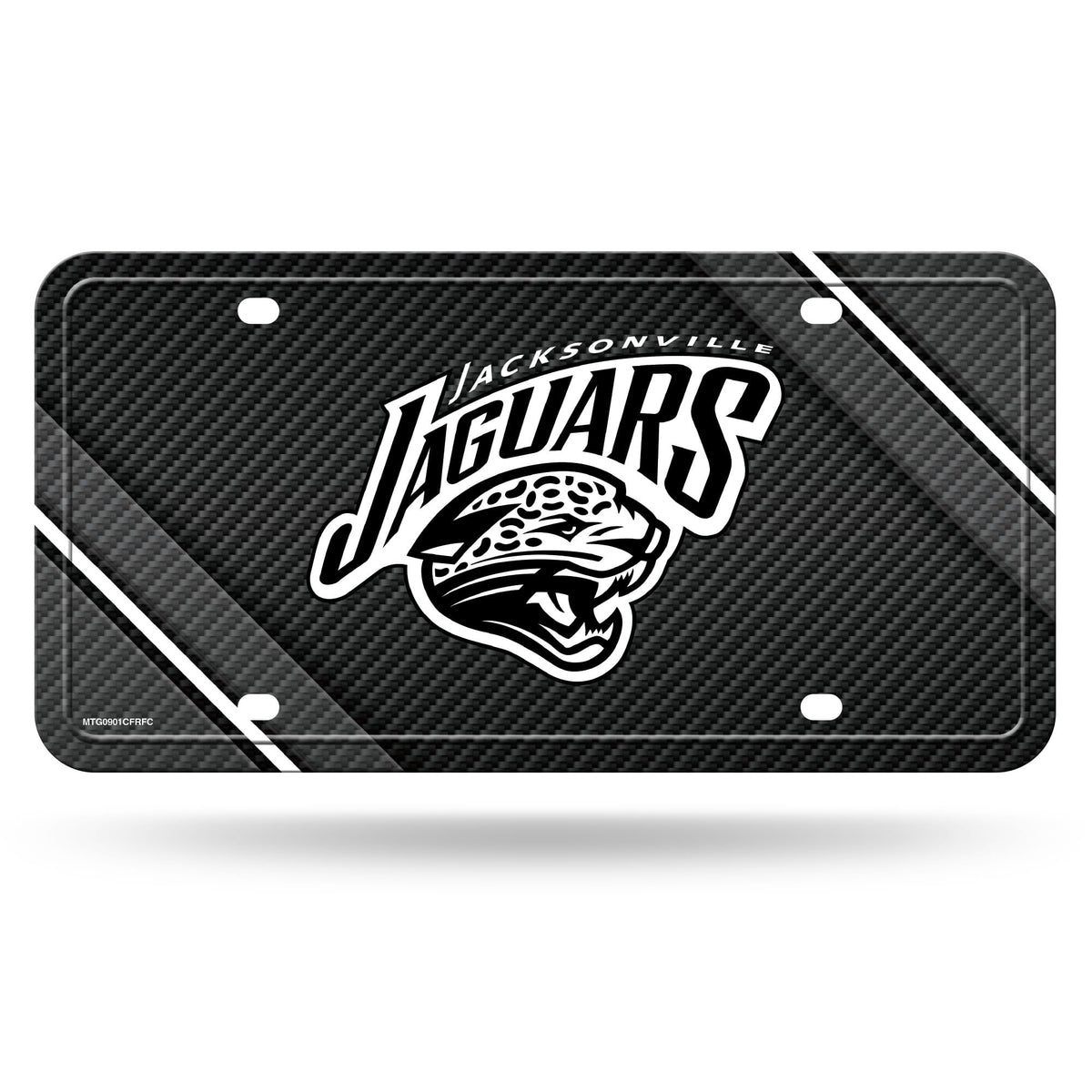 Jacksonville Jaguars Metal License Plate Frame Chrome Tag Cover Carbon Fiber Design 6x12 Inch