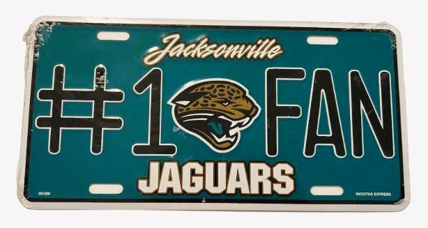 Jacksonville Jaguars Premium Metal Tag License Plate, #1 Fan Style, Retro Design, 6x12 Inch