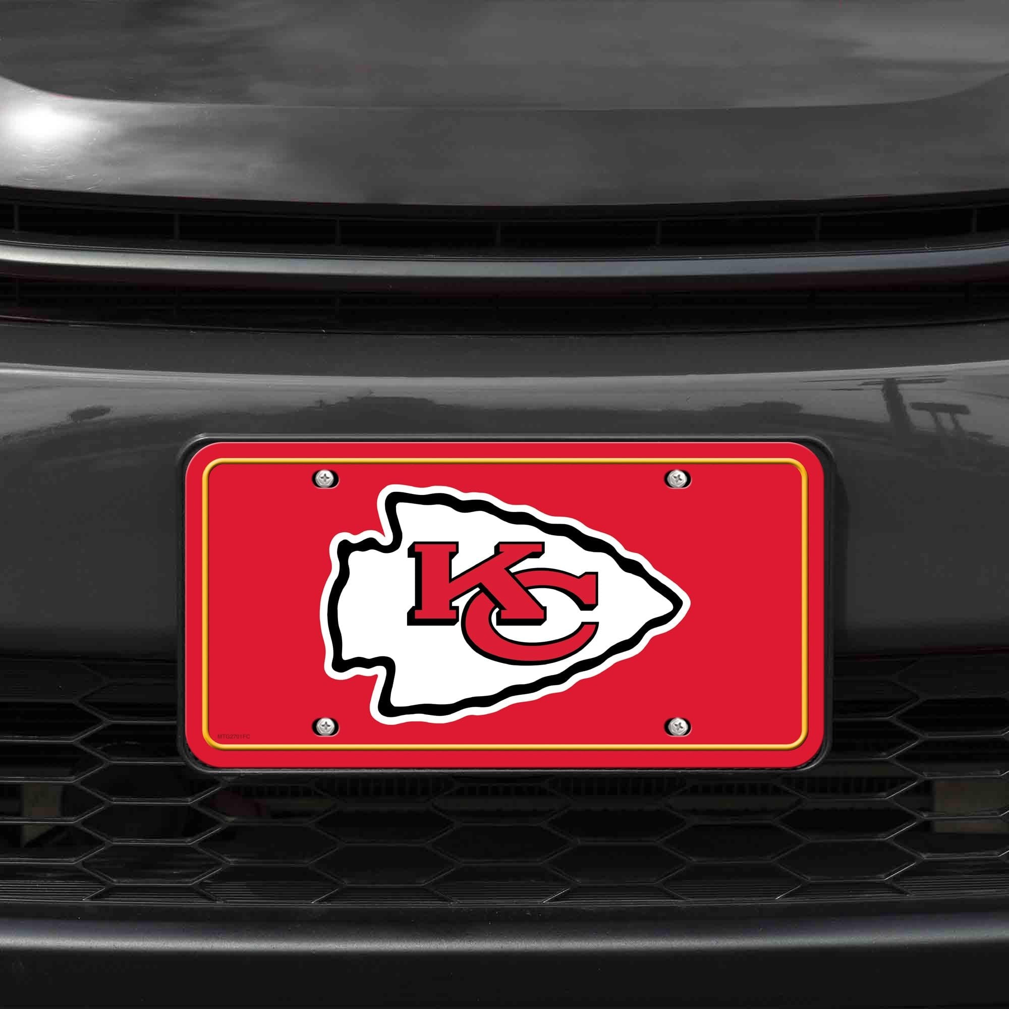 Kansas City Chiefs Premium Laser Cut Tag License Plate, Red, Mirrored Acrylic Inlaid, 12x6 Inch