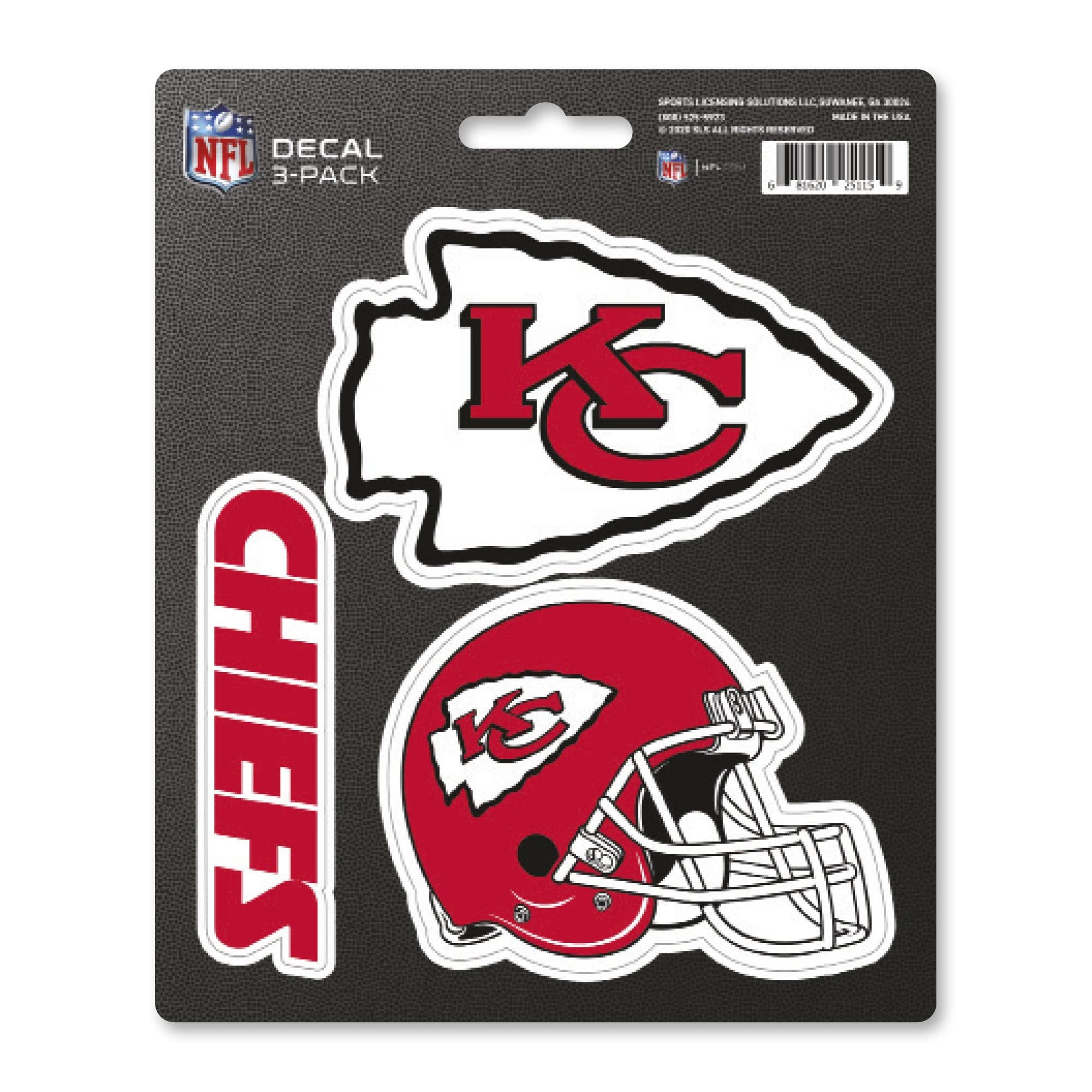 FANMATS 60958 Kansas City Chiefs 3 Piece Decal Sticker SetMeasures Approximately 5-inches by 7.5-inchesConstructed from Die-Cut, Premium, Vinyl MaterialFeatures UV Resistant Lamination to Ensure Outstanding DurabilityIncludes 3 Adhesive Decals Featuring Team Colored GraphicsMade in USAPerfect for Cars, Windows, Laptops, Water Bottles, and Outdoor SurfacesEasy Peel & Stick Application with Full Adhesive Backing - No Tools Required