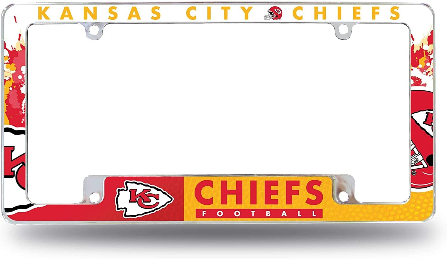 Kansas City Chiefs Metal License License Plate Frame Tag Cover, All Over Design, 12x6 Inch