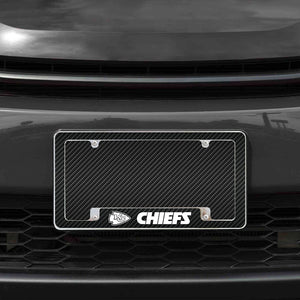 Kansas City Chiefs Metal License Plate Frame Chrome Tag Cover Carbon Fiber Design 6x12 Inch