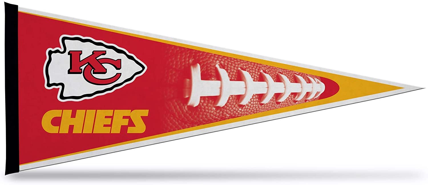 Kansas City Chiefs Soft Felt Pennant, Football Design, 12x30 Inch, Easy To Hang