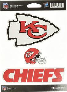 NFL Rico Industries Die Cut 3-Piece Triple Spirit Sticker Sheet, Kansas City Chiefs Team Color, 5 x 7-inches