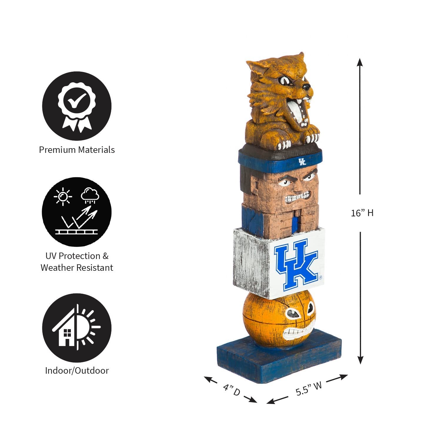 Team Sports America Evergreen NCAA Kentucky Wildcats Tiki TotemMeasures approximately 5.5-inches by 16-inchesSculpted from 100% Resin with Hand-painted Wood-Carving DetailsDecorated with Team Colors and GraphicsOfficially Licensed by the National Collegiate Athletic AssociationDecorate Your Home or Yard with this Fun Tiki Totem!
