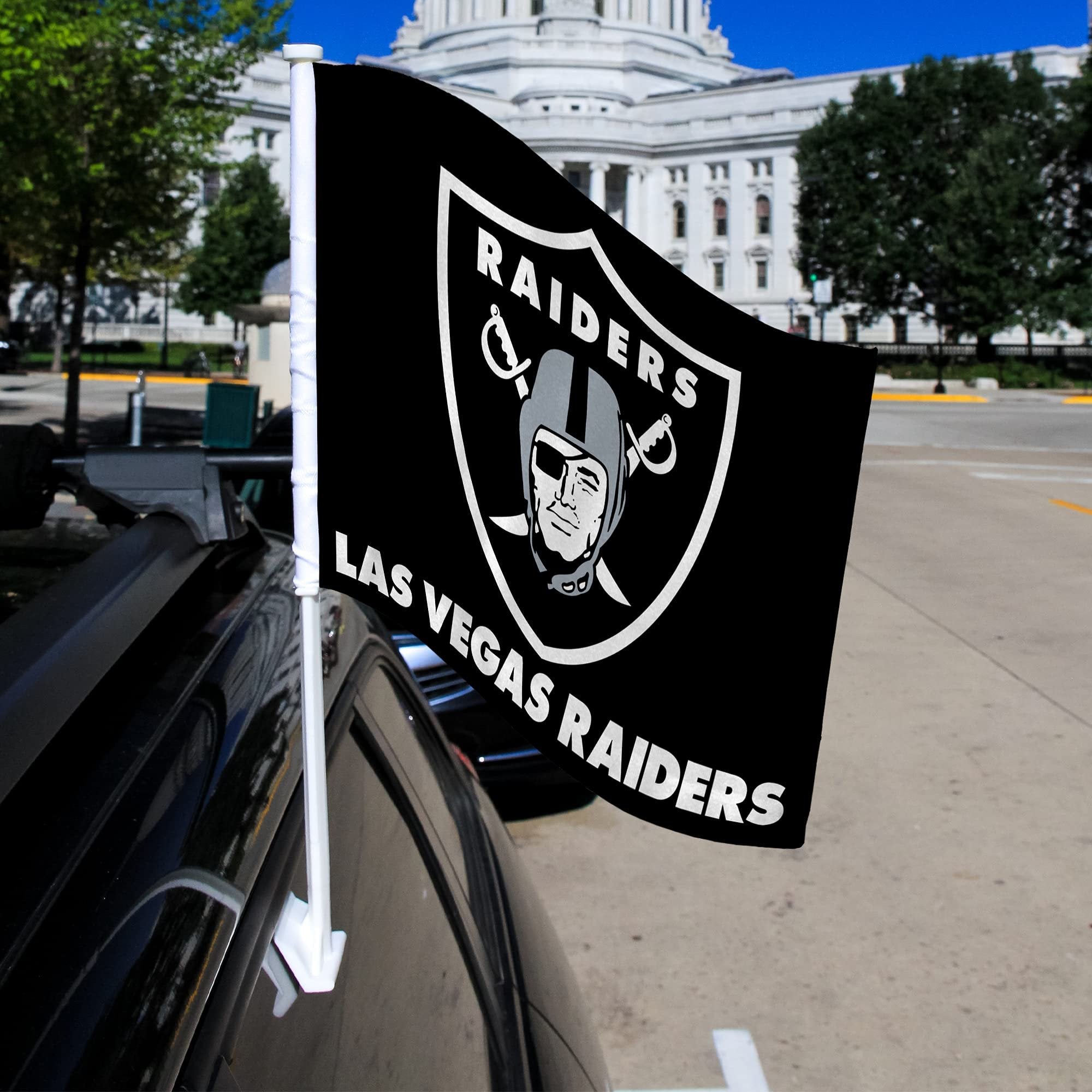 Las Vegas Raiders Premium Double Sided Car Flag Banner, Includes Plastic Display Pole