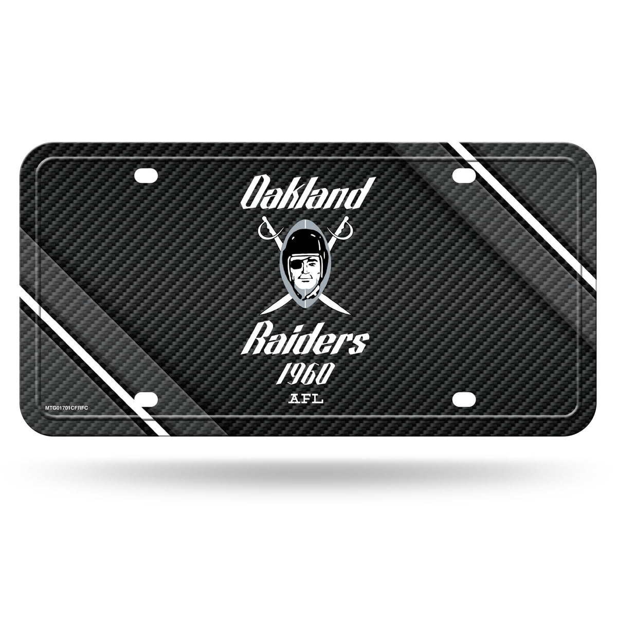 Las Vegas Raiders Premium Metal Auto Tag License Plate, Retro Logo, Carbon Fiber Design Background, 6x12 Inch, Pre-Drilled Holes, Officially Licensed