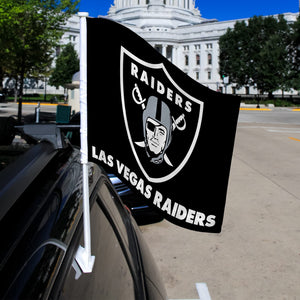 Las Vegas Raiders Premium Double Sided Car Flag Banner, Includes Plastic Display Pole