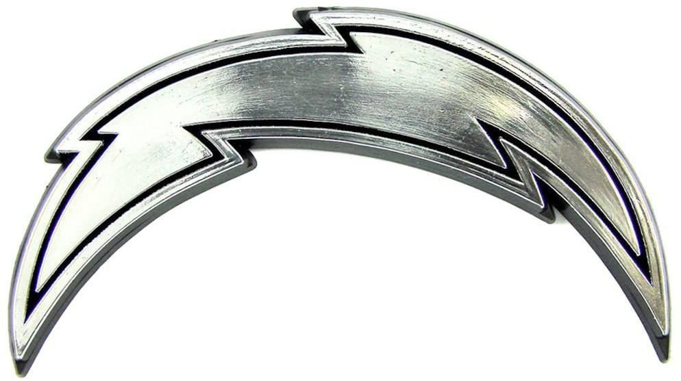 Los Angeles Chargers Auto Emblem, Plastic Molded, Silver Chrome Color, Raised 3D Effect, Adhesive Backing