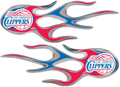 Los Angeles Clippers Pair of Decal Sticker Emblem, Air Puffed Raised, Micro Flame Design, Full Adhesive Backing, 2x5 Inch Each