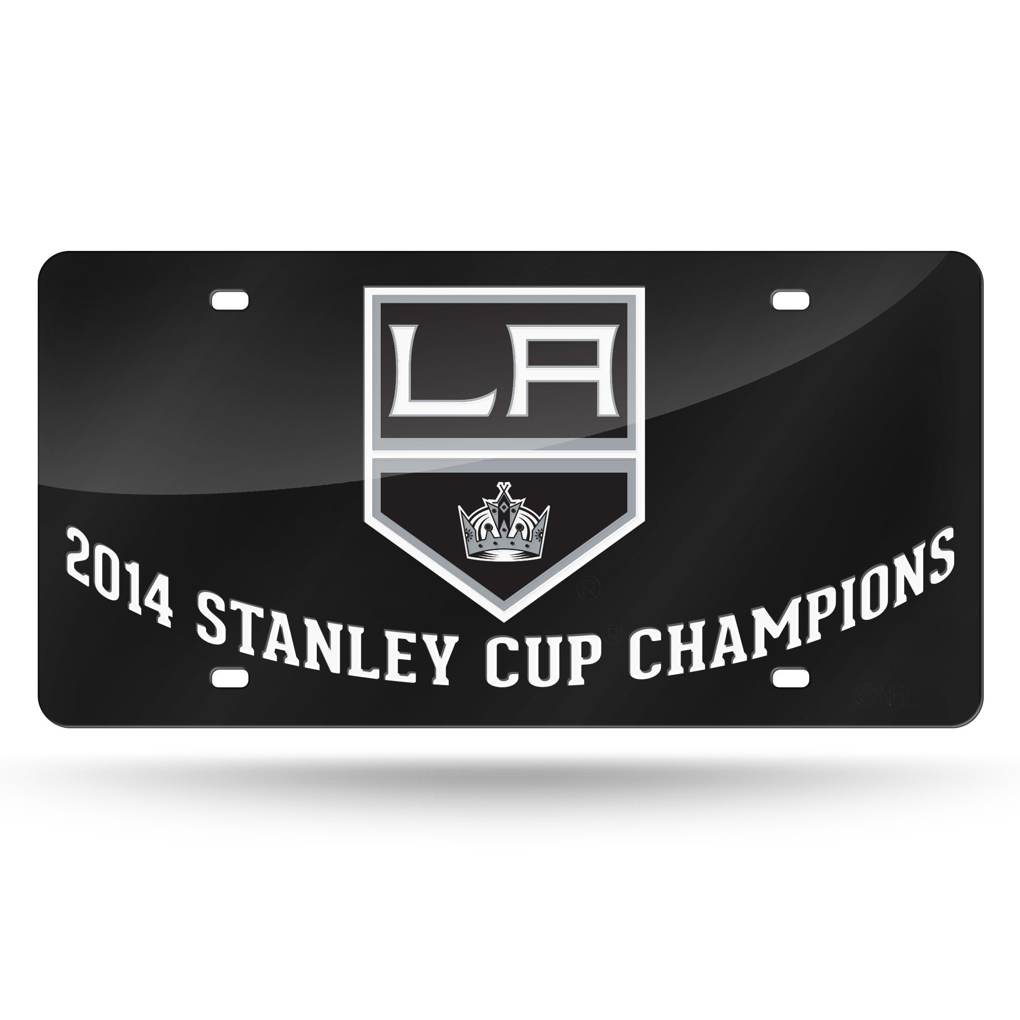 Los Angeles Kings 2014 Champions Premium Laser Cut Tag License Plate, Black Mirrored Acrylic Inlaid, 12x6 Inch, Pre-drilled Holes, Officially Licensed