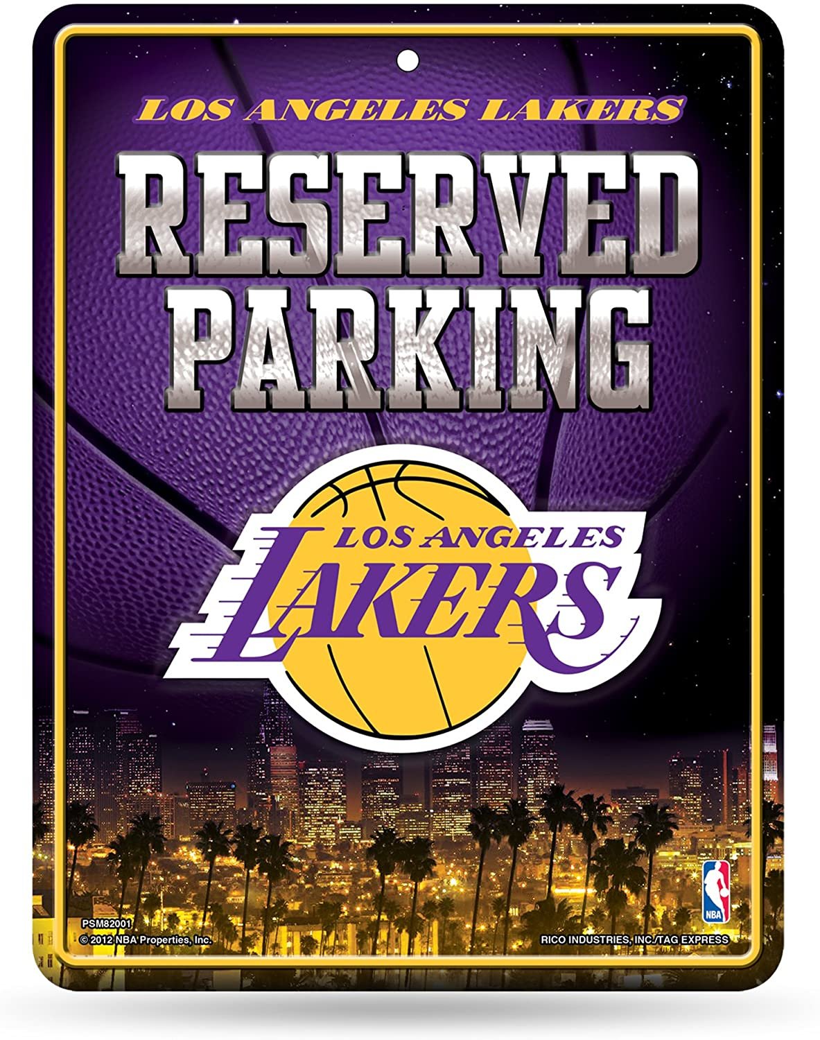 Los Angeles Lakers 8.5'' x 11'' Metal Reserved Parking SignMade in the USAMade of metalReady to hangMeasures 8.5" x 11"Officially licensed NBA productHigh-quality team graphicsMade of metalMeasures 8.5" x 11"High-quality team graphicsReady to hangMade in the USAOfficially licensed NBA productMetal Parking Sign Measures 8.5-inches by 11-inchesFeatures 4-Color Process Printing in Team Colored Graphics, Creates Dynamic and Bold StatementConstructed of High Quality Embossed AluminumFeatures Pre-Drilled Holes for Easy InstallationOfficially Licensed, Made in the USAThe 8.5-Inch by 11-Inch Metal Parking Sign Décor by Rico Industries is the ultimate showcase of your team pride both as a decoration in the home or office, and when it comes to marking which parking spot is yours. It measures 8.5-inches by 11-inches and is decorated with vibrant team colored graphics that everyone is sure to notice. Made from embossed aluminum this sign features a pre-drilled hole for easy wall hanging.Measures 8.5-inches-by-11-inches