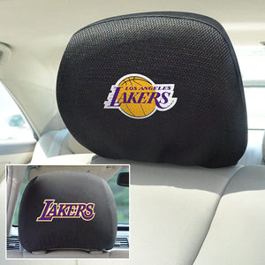 Los Angeles Lakers Pair of Premium Auto Head Rest Covers, Embroidered, Black Elastic, 14x10 Inch