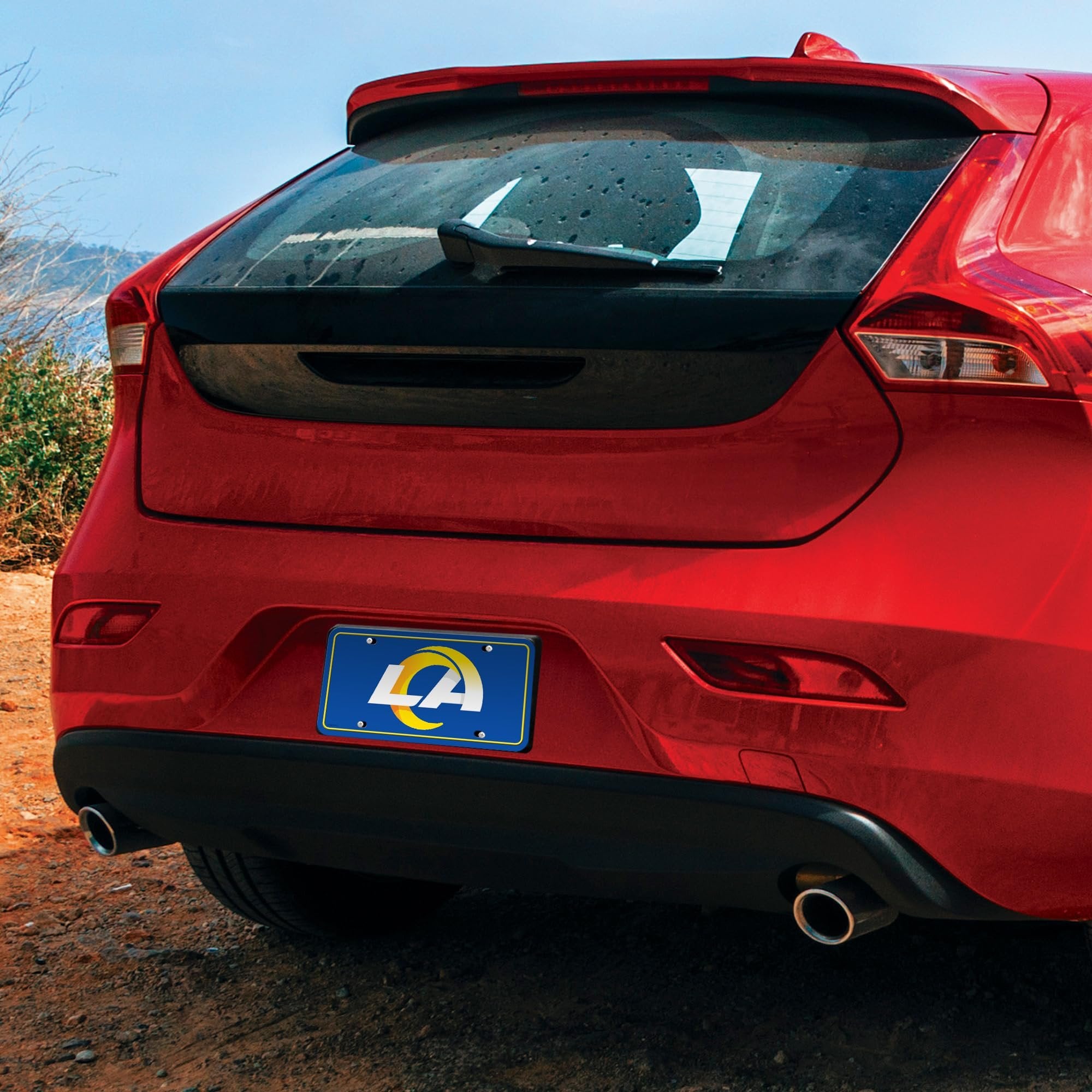 Los Angeles Rams Premium Metal Auto Tag License Plate, Primary Design, 6x12 Inch, Pre-Drilled Holes, Officially Licensed
