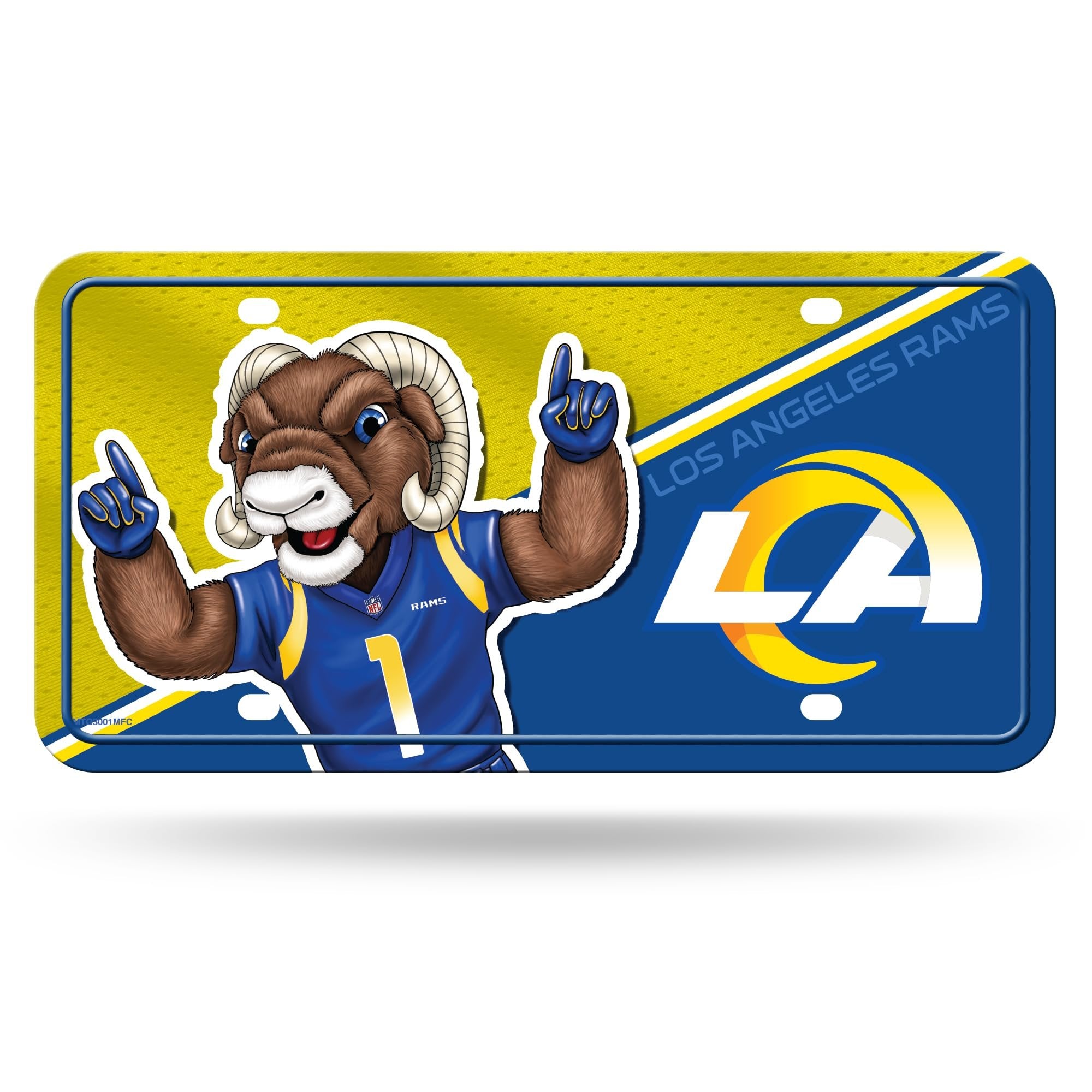 Los Angeles Rams Mascot Design Metal License Plate 6" x 12" A great gift idea for Los Angeles Rams football fans that is guaranteed to be a beloved possession with eye catching graphics. Durable and fade resistant, the 12" x 6" novelty automobile tag is expertly made, using quality aluminum which ensures it can survive the different season and extreme weather. This auto accessory is perfect for the casual and everyday fan. Whether it is game day at the stadium or a home game with friends this sports logo license plate will be the highlight of the drive. It can be used on the front or back or your car, truck, or RV. Has predrilled screw holes to easily attach onto your automobile. Hassle free!Great Gift Item for Football Fans: Guaranteed to be your most beloved possession as it boasts eye catching graphics and is inscribed with your favorite squad’s name and colors. Proudly display your favorite teams name and colorA One-Of-A-Kind Sports Fan Novelty License Plate – Be the first to own an exceptionally durable, fade resistant 12" x 6" automobile tag. Expertly made, using quality aluminum which ensures your tag can survive the different season and extreme weather.A Fan Favorite Auto Accessory - This sports logo license plate is perfect for the casual and everyday fan. Whether it is game day at the stadium or a home game with friends this auto tag will be the highlight of the drive.High Performance & Versatile: This brand-new novelty license plate can be used on the front or back or your car, truck, or RV. It can also be used on your trailer. Has predrilled screw holes to easily attach onto your automobile. Hassle free!Bring Your Room Car To Life With This Officially Licensed Car/Truck Tag - A limited edition collectible that will be talked about forever whether you are a casual, social, or super fanatic fan. All your friends will be asking you where you got your auto Tag!