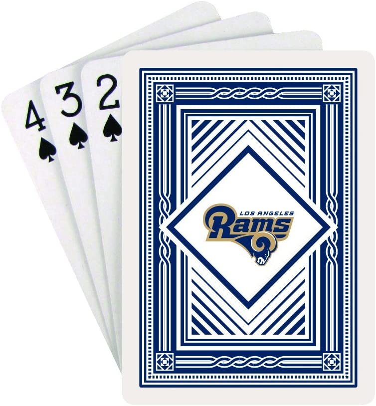 Go Rams!! Add more Fun to your game day party, BBQ or Tailgate event with Officially Licensed NFL Team Playing Cards! These top-quality cards are beautifully decorated with your favorite team's full-color team logo. Perfect Party Starters! Great gift for every sports fan! Perfect stocking stuffer! Standard poker size deck...2.5"W X 3.5" H , standard index 52 cards plus 2 jokers.Officially Licensed NFL Team Playing CardsStandard Size Poker Deck2.5" W X 3.5" HStandard Index 52 Cards Plus 2 Jokers