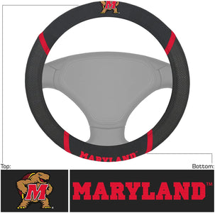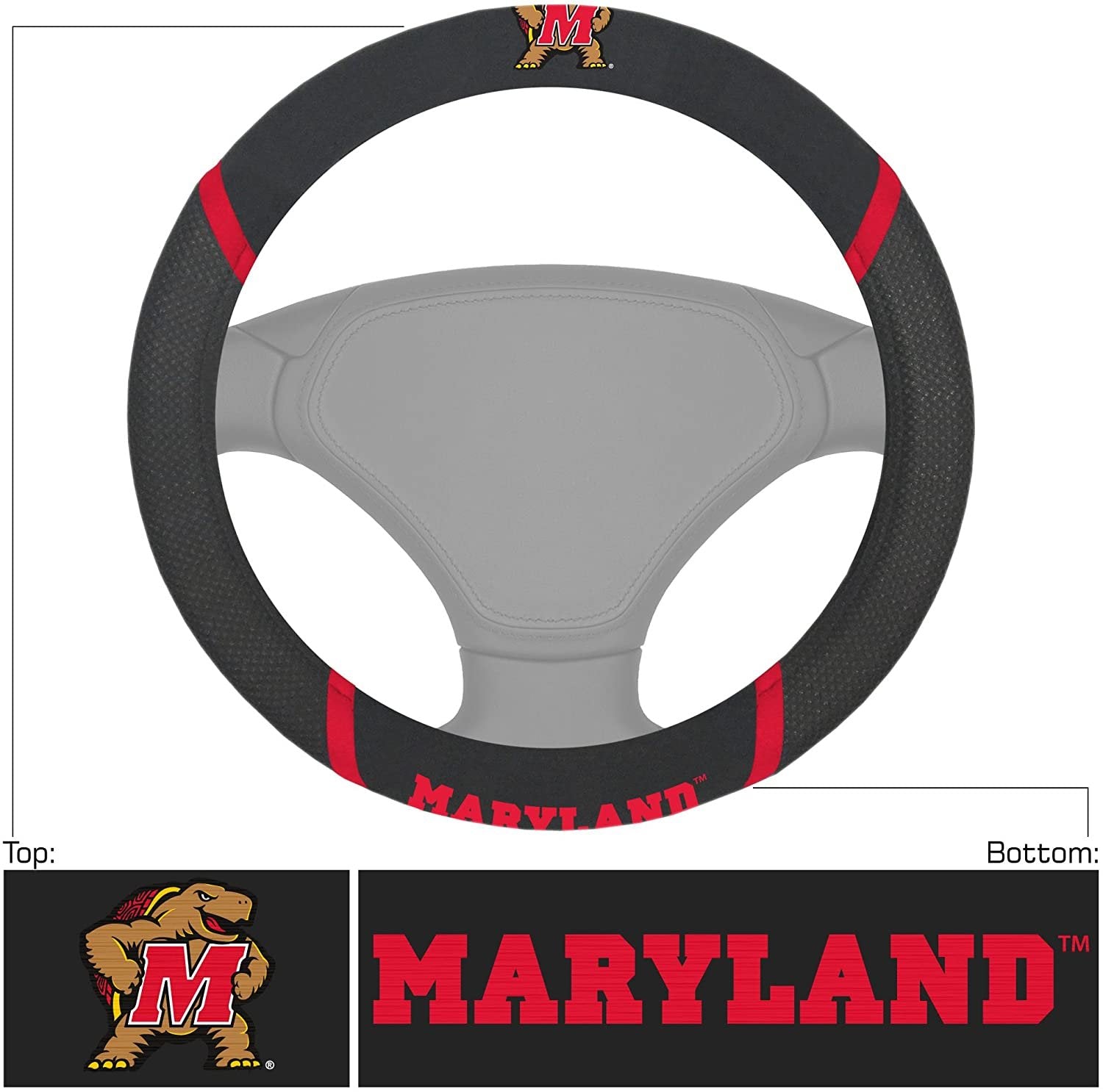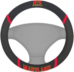 FANMATS University of Maryland Steering Wheel Cover features your favorite team and dresses up your vehicle interior. Crafted with a combination of faux suede and mesh fabric, embroidered with your team logo and team name. Keeps your steering wheel cool in the summer and warm in the winter. Approximately 15 inches in diameter, the steering wheel cover fits most vehicles. Customize your ride and announce your team spirit with pride.Features your favorite team name and logo; dress up your vehicle interiorEmbroidered with both team logo and team nameThe combination of faux suede and mesh fabric keeps your steering wheel cool in summer and warm in winterApproximately 15 inches in diameter - fits most vehiclesCustomize your ride and announce your team spirit with pride