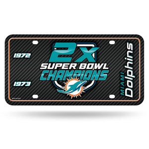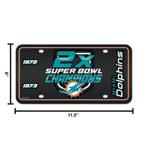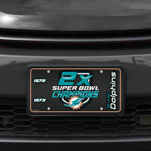 Miami Dolphins 2-Time Champions Premium Metal Tag License Plate, Carbon Fiber Design, 12x6 inch, Pre-Drilled Holes, Officially Licensed