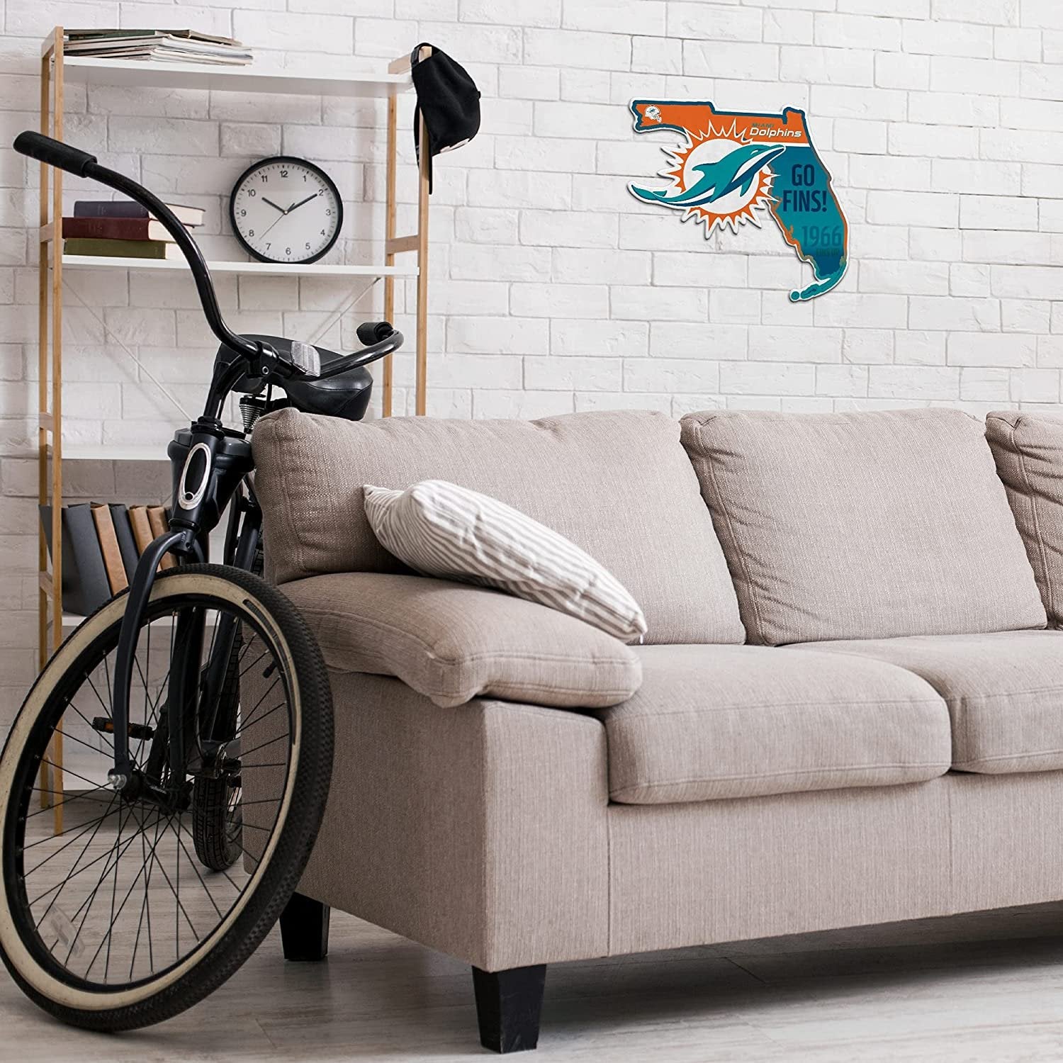 Rico Industries NFL Miami Dolphins State Shape Shape Cut Pennant - Home and Living Room Décor - Soft Felt EZ to Hang 18x0.10x18FeltGreen Bay Packers Fans!! - Show off your team pride with this beautiful felt construction wall pennant by Rico.DISPLAY & SIZE: Place your pennant in your bedroom, office, man cave, living room, or kitchen to show your team pride. Felt Banner Measures at 18" x 18" inchesVIBRANT COLORS & BRIGHTLY DECORATED - This felt is made of natural fibers that absorb colors during printing to give it a long lasting bright and vibrant appearance for years to come.Green Bay Packers Fans!! - Show off your team pride with this beautiful felt construction wall pennant by Rico.PROUDLY MADE IN THE USA BY AMERICAN WORKERS - Every banner made to a high standard by our American workforce delivering quality in every item.Miami Dolphins Fans - Show Off Your Team Pride With This Beautiful Felt Construction Wall Pennant By Rico