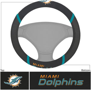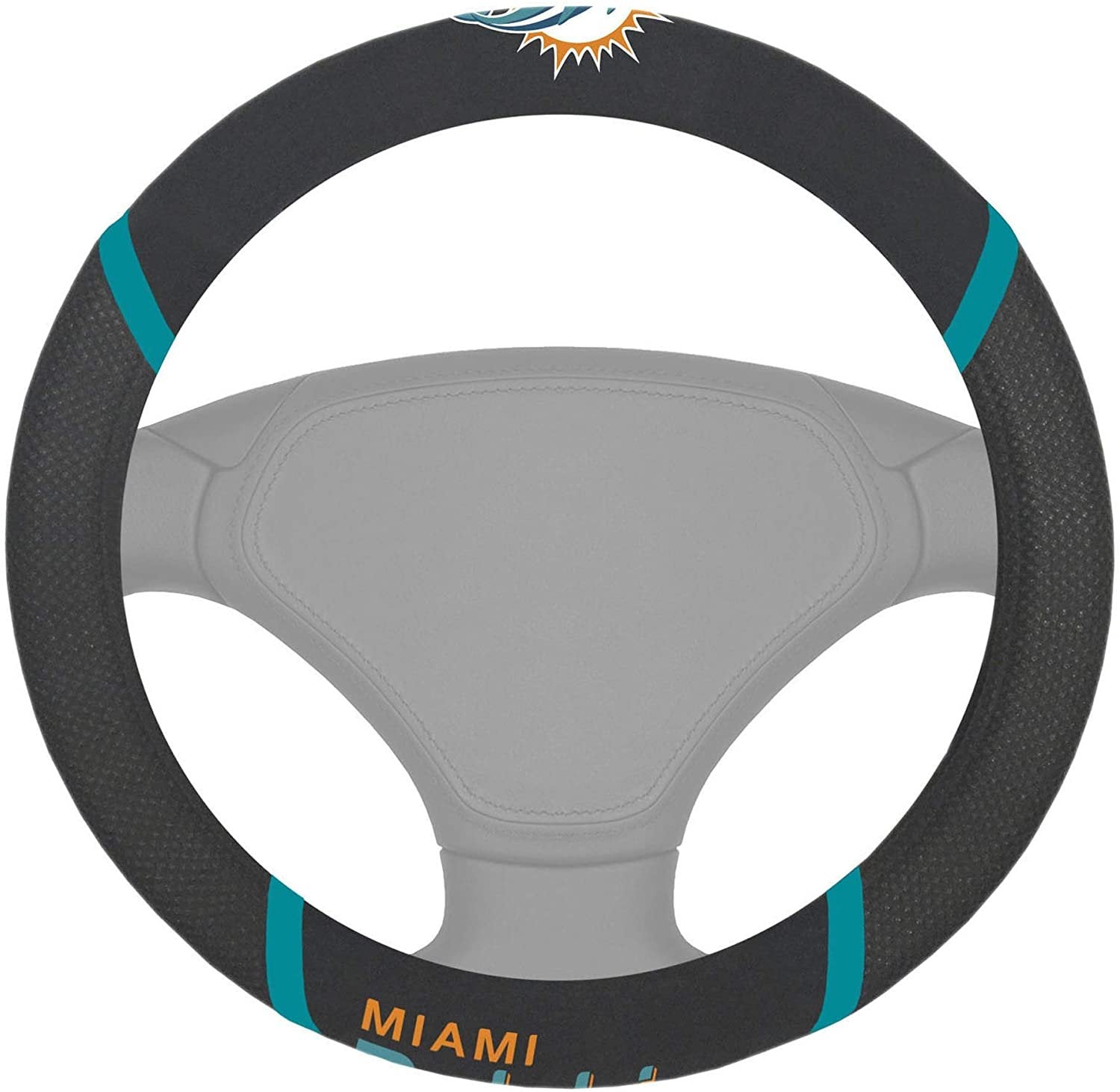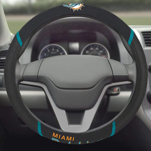 Miami Dolphins Premium 15 Inch Black Emroidered Steering Wheel Cover