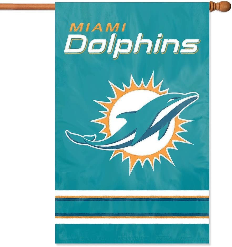 Miami Dolphins Premium Double Sided House Banner Flag, 28x44 Inch, Applique Emroidered, Logo Design