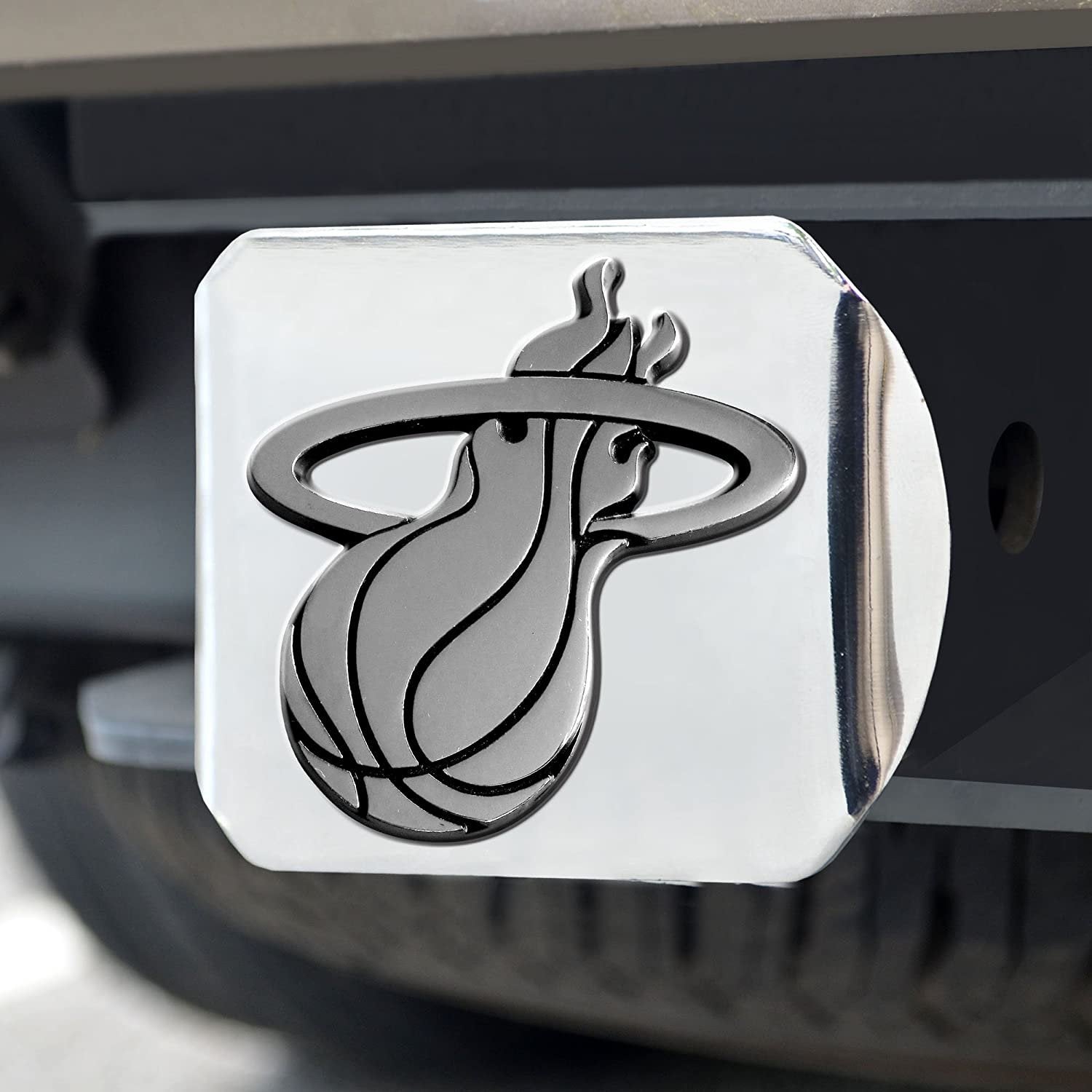 FANMATS NBA Miami Heat Hitch Cover fits all 2 inches/type III hitches. Keep your hitch clear of debris and let everyone see your favorite team. Easy on and off - it attaches safely and securely without tools. The hitch cover is made of durable, high quality chrome to withstand the elements no matter how the weather is. Your team's logo will be proudly displayed in a high shine, matching chrome metal. Customize your ride and let everyone know that you're the number one fan of the number one team.Fits all 2 inches/type III hitchesKeep your hitch clear of debris and let everyone see your favorite teamEasy on and off - attaches safely and securely without toolsMade of durable high quality chrome to withstand the elementsCustomize your ride - let everyone know you are the number one fan of the number one team