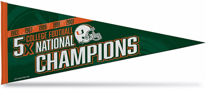 University of Miami Hurricanes 5-Time Champions Soft Felt Pennant, 12x30 Inch, Easy To Hang