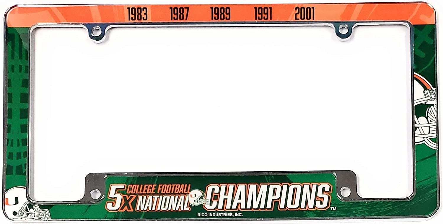 University of Miami Hurricanes 5X Time Champions Metal License License Plate Frame Tag Cover, All Over Design, 12x6 Inch