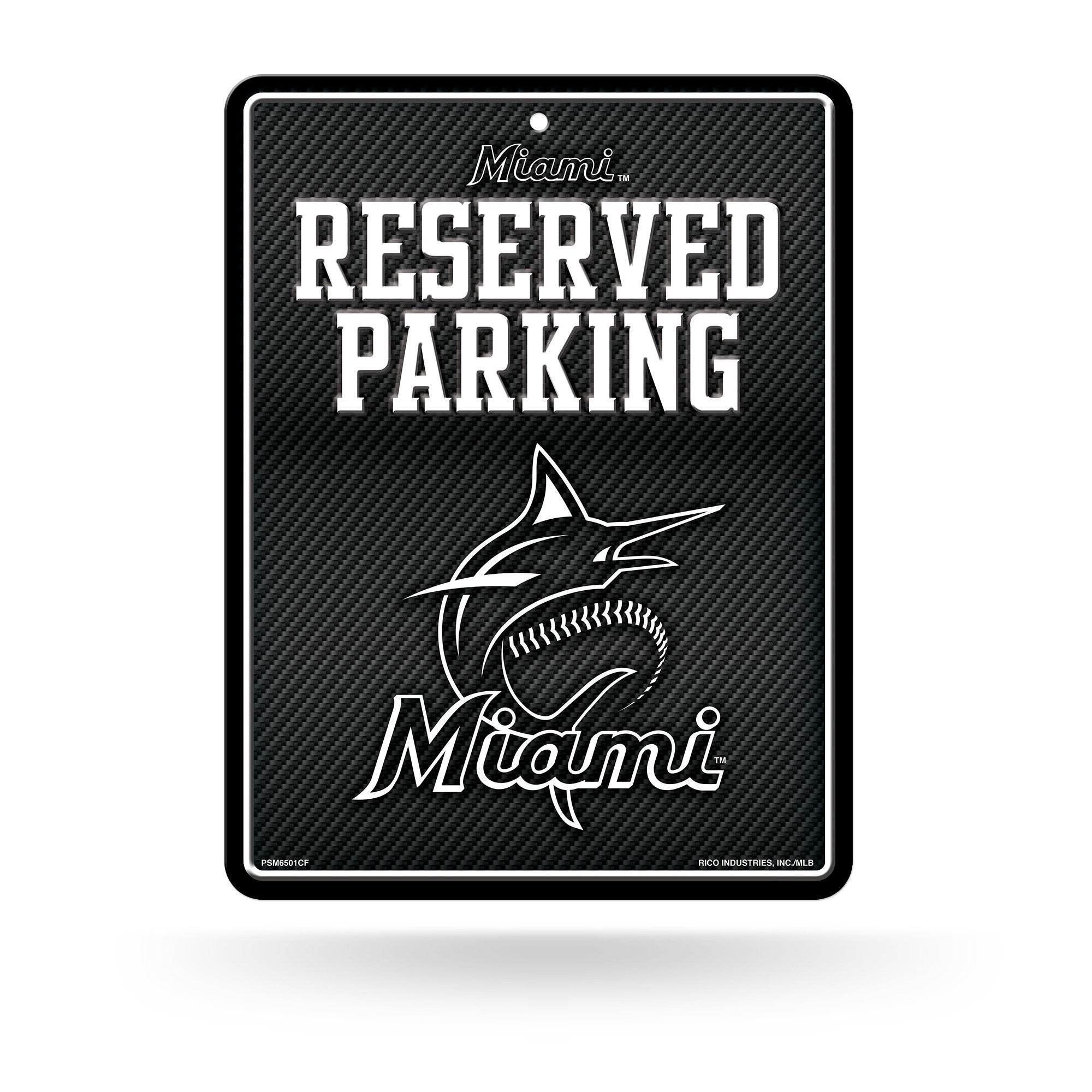 Miami Marlins Premium Metal Wall Parking Sign, 8.5x11 Inch, Carbon Fiber Design, Great for Man Cave, Bed Room, Office, Home Decor, Officially Licensed