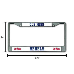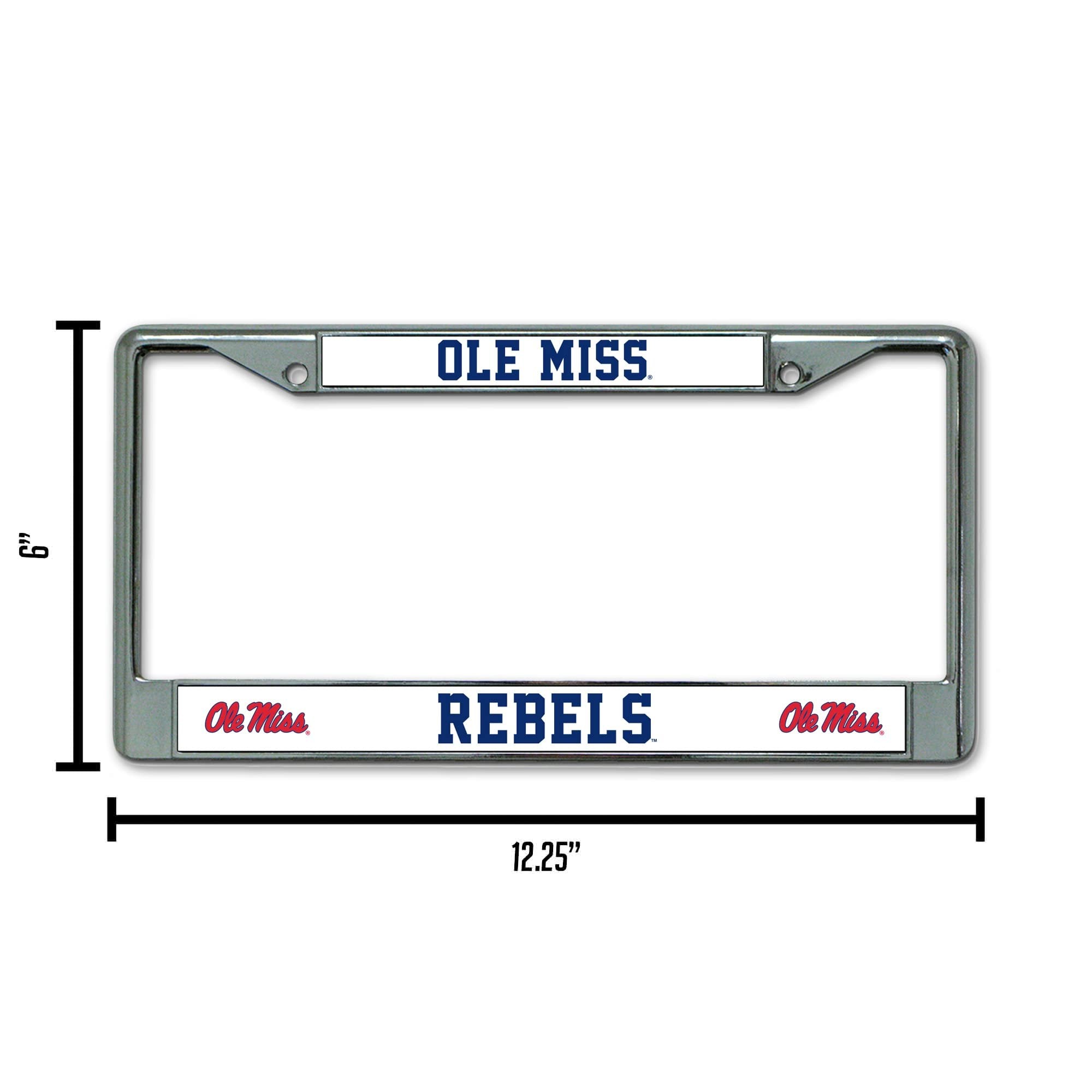 Rico Industries NCAA Mississippi Ole Miss Rebels Standard Chrome License Plate Frame, 6 x 12.25-", Team ColorDurable and long-lasting license frame measures a standard 6 x 12.25-inchesAcrylic inserts are laser cut with team name and logos and hand-assembledTwo pre-drilled holes allows for easy mounting, fits most license platesMade of metal in sleek silver chrome color; Proves to be resistant to the elementsImported and Finished in the USATrust; it's not a word used lightly these days. Over the last 75 years, Rico Industries has earned an unparalleled reputation for trust and integrity among it's customers. Our Standard Chrome License Plate Frame makes a big impact with sleek chrome finish against vivid team name plate and color team logos. Fits all standard license plates, measure 6" x 12.25". Pre-drilled holes make this piece easy to hang to your vehicle and is sure to add some more excitement to your drive.Officially licensed NCAA merchandise
