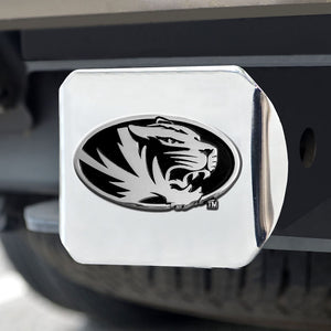 FANMATS University of Missouri Hitch Cover fits all 2 inches/type III hitches. Keep your hitch clear of debris and let everyone see your favorite team. Easy on and off - it attaches safely and securely without tools. The hitch cover is made of durable, high quality chrome to withstand the elements no matter how the weather is. Your team's logo will be proudly displayed in a high shine, matching chrome metal. Customize your ride and let everyone know that you're the number one fan of the number one team.Fits all 2 inches/type III hitchesKeep your hitch clear of debris and let everyone see your favorite teamEasy on and off - attaches safely and securely without toolsMade of durable high quality chrome to withstand the elementsCustomize your ride - let everyone know you are the number one fan of the number one team