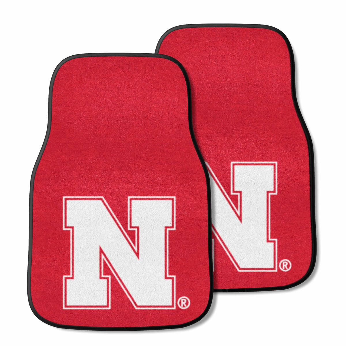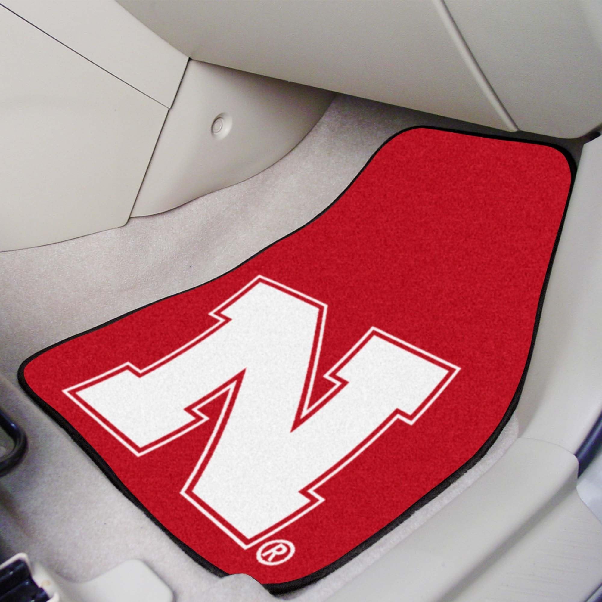 University of Nebraska Cornhuskers 2-Piece Vehicle Carpet Mat Set, Front Row Automotive Floor Mats, Non-Slip Backing, 18x27 Inch Each, Team Colors, Officially Licensed