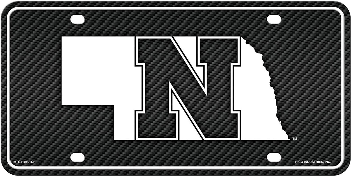 University of Nebraska Cornhuskers Metal Auto Tag License Plate, Carbon Fiber Design, 6x12 Inch
