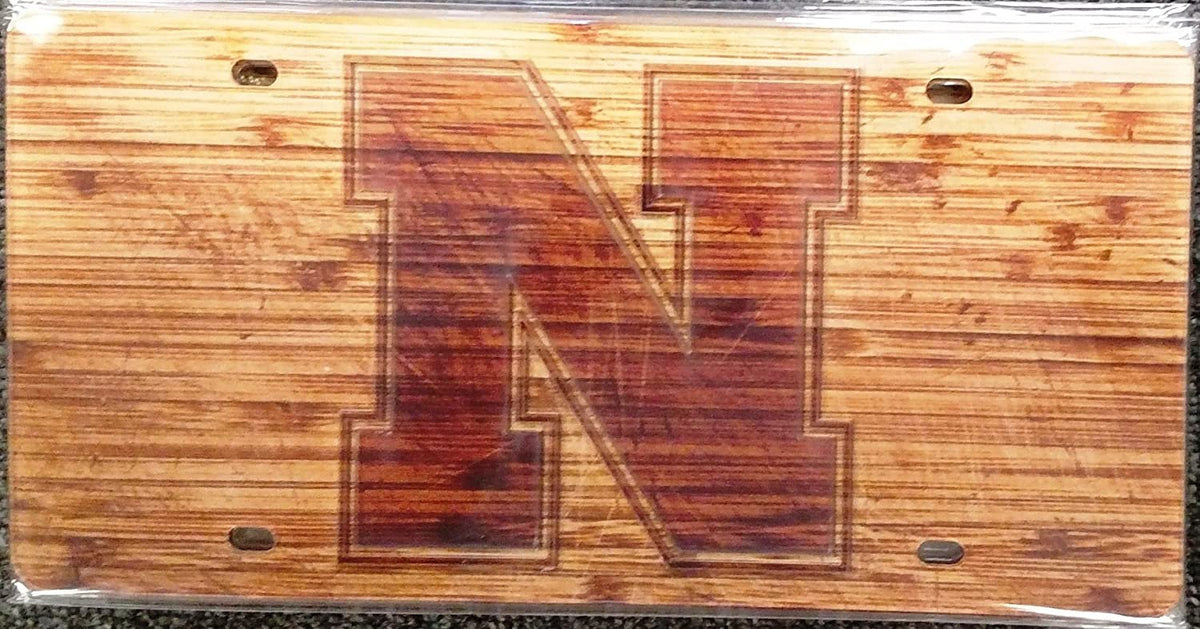 University of Nebraska Cornhuskers Premium Laser Cut Tag License Plate, Woodgrain Design, Mirrored Acrylic Inlaid, 6x12 Inch