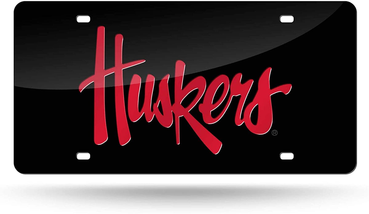 University of Nebraska Cornhuskers Laser Cut Tag License Plate, Country, Mirrored Acrylic Inlaid, 12x6 Inch