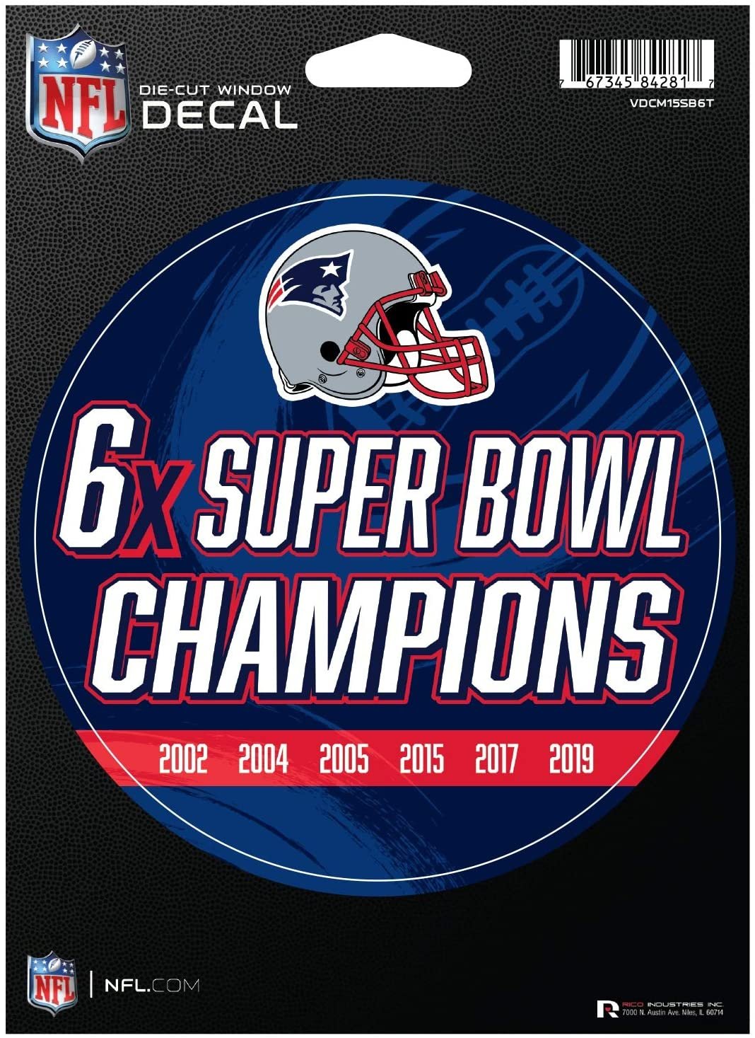 New England Patriots 5" Decal Sticker 6X Time Champions Flat Vinyl Auto Emblem Football