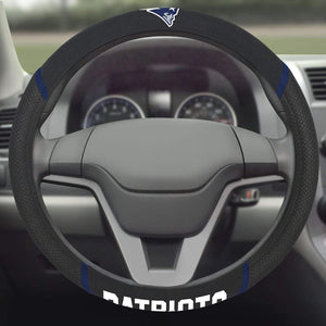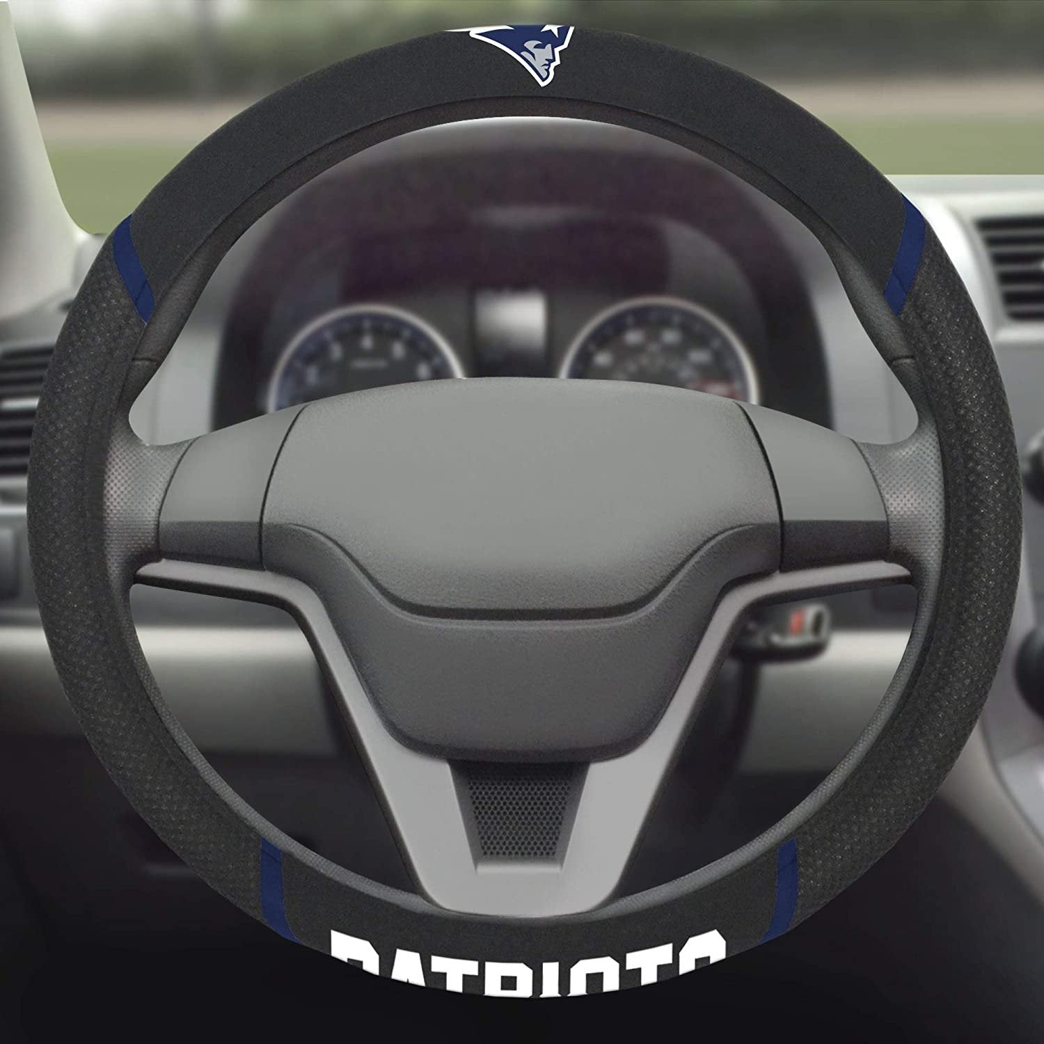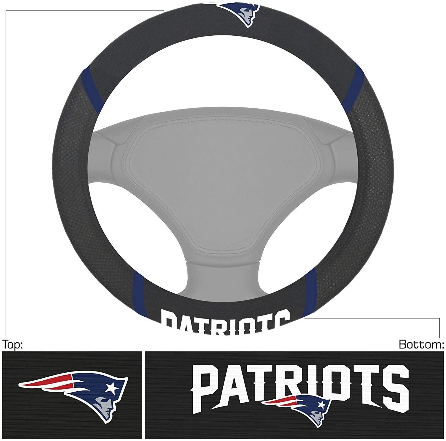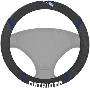New England Patriots Premium 15 Inch Black Emroidered Steering Wheel Cover