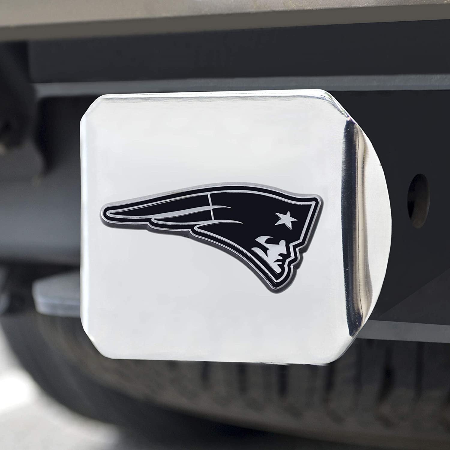 New England Patriots Solid Metal Hitch Cover with Chrome Metal Emblem 2 Inch Square Type III