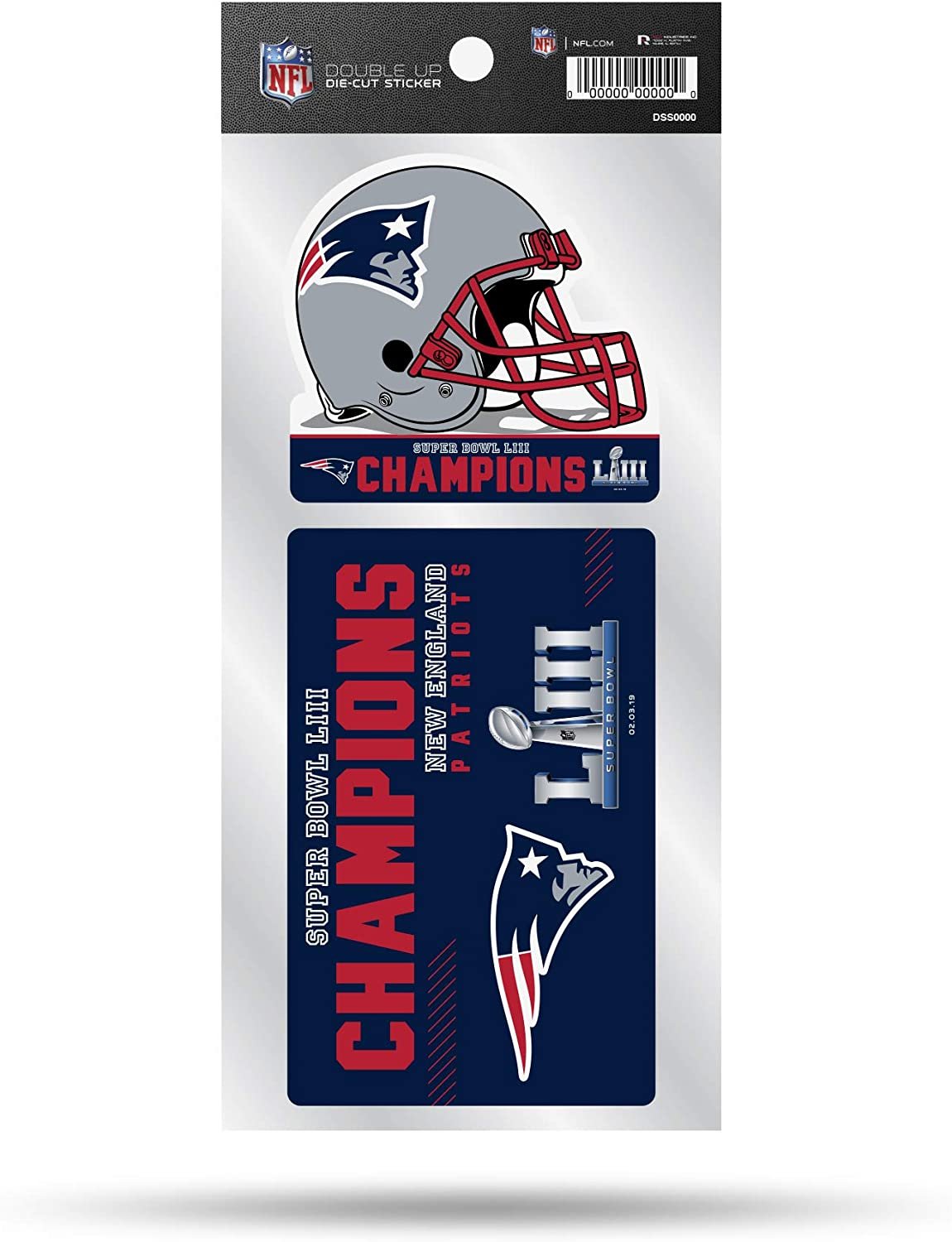 New England Patriots Super Bowl LIII Champions Sticker Decal Sheet 2-Piece, 4 Inch Double Up