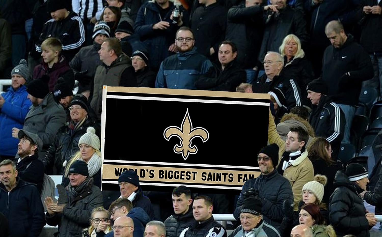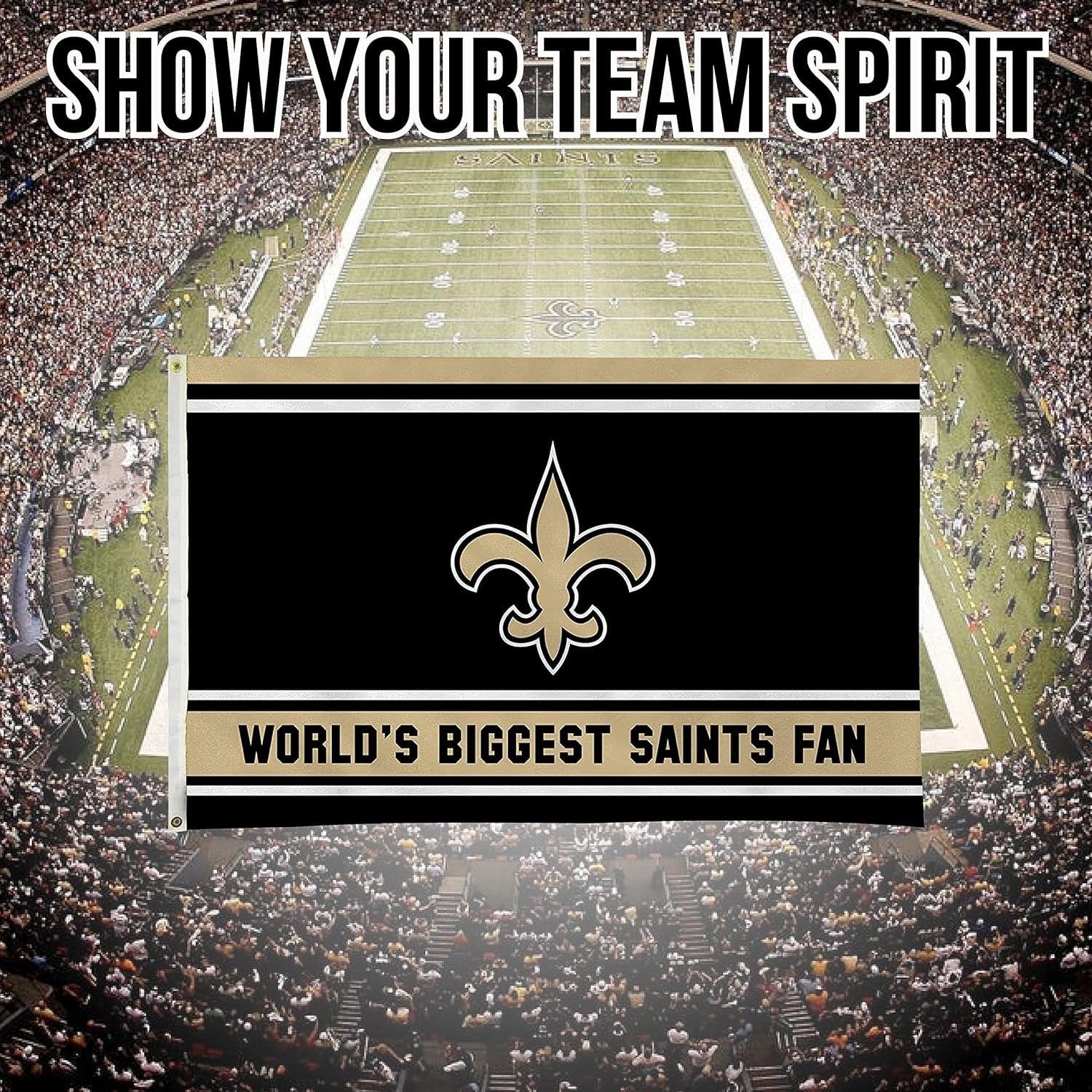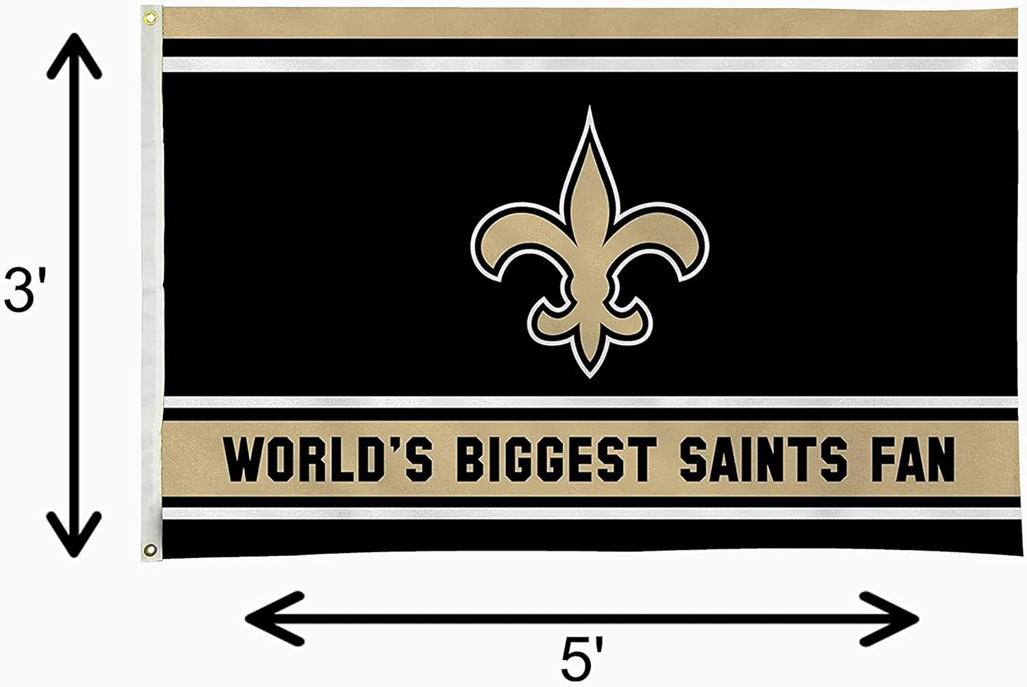 New Orleans Saints 3x5 Feet Flag Banner, World's Biggest Fan, Metal Grommets, Single Sided, Indoor or Outdoor Use