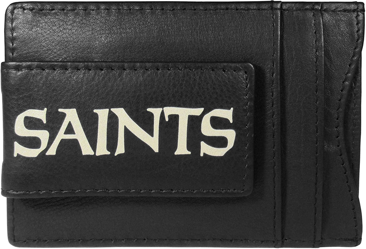 New Orleans Saints Black Leather Wallet, Front Pocket Magnetic Money Clip, Printed Logo