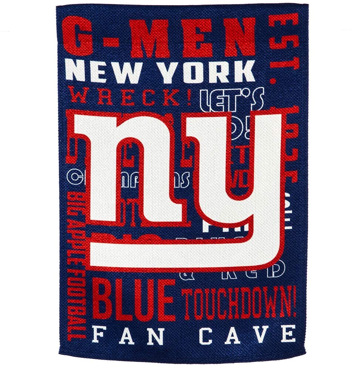 - SUPPORT YOUR TEAM IN STYLE: Show your pride loud and proud with this gorgeous double sided garden flag. New York Giants fans will enjoy a red, white, and blue flag with the Giants logo embossed in the center with different designs on both sides of the flag. Various team phrases like Big Apple Football, G-Men, Big Blue, and Est. 1925 accent the flag and display your team spirit for everyone to see.